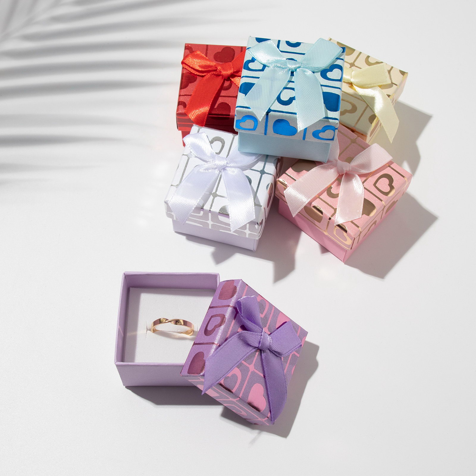 Коробочка подарочная под кольцо, серьги "Сердца", 5x5 см,, 5x5x3 см., Китай