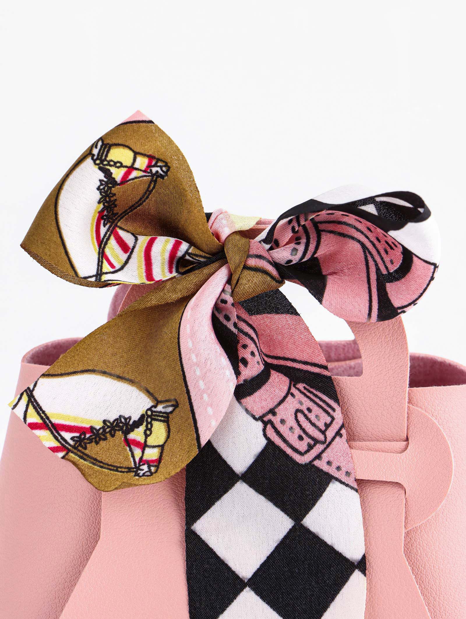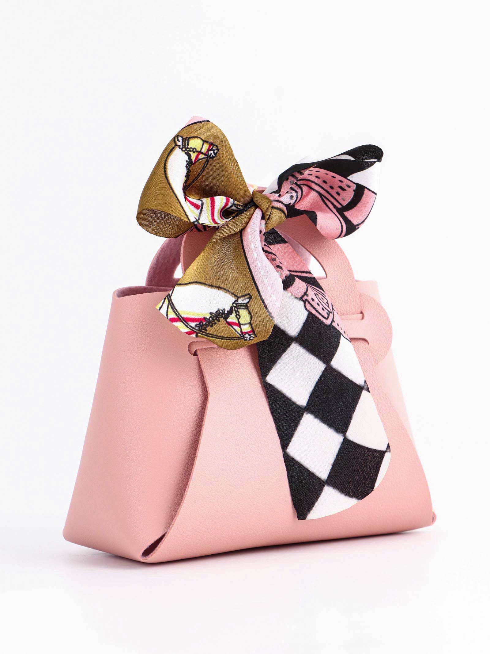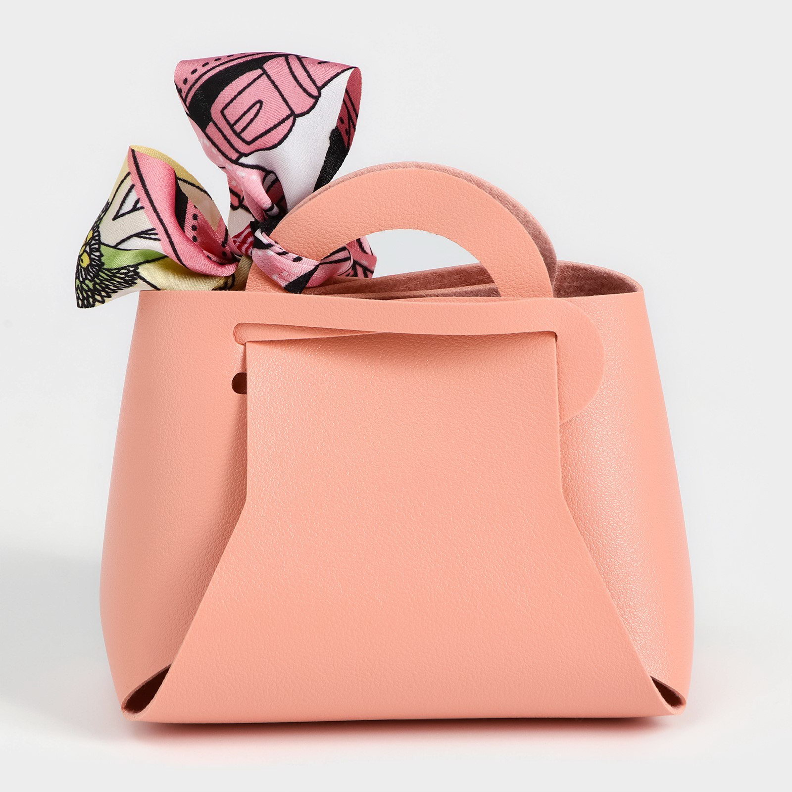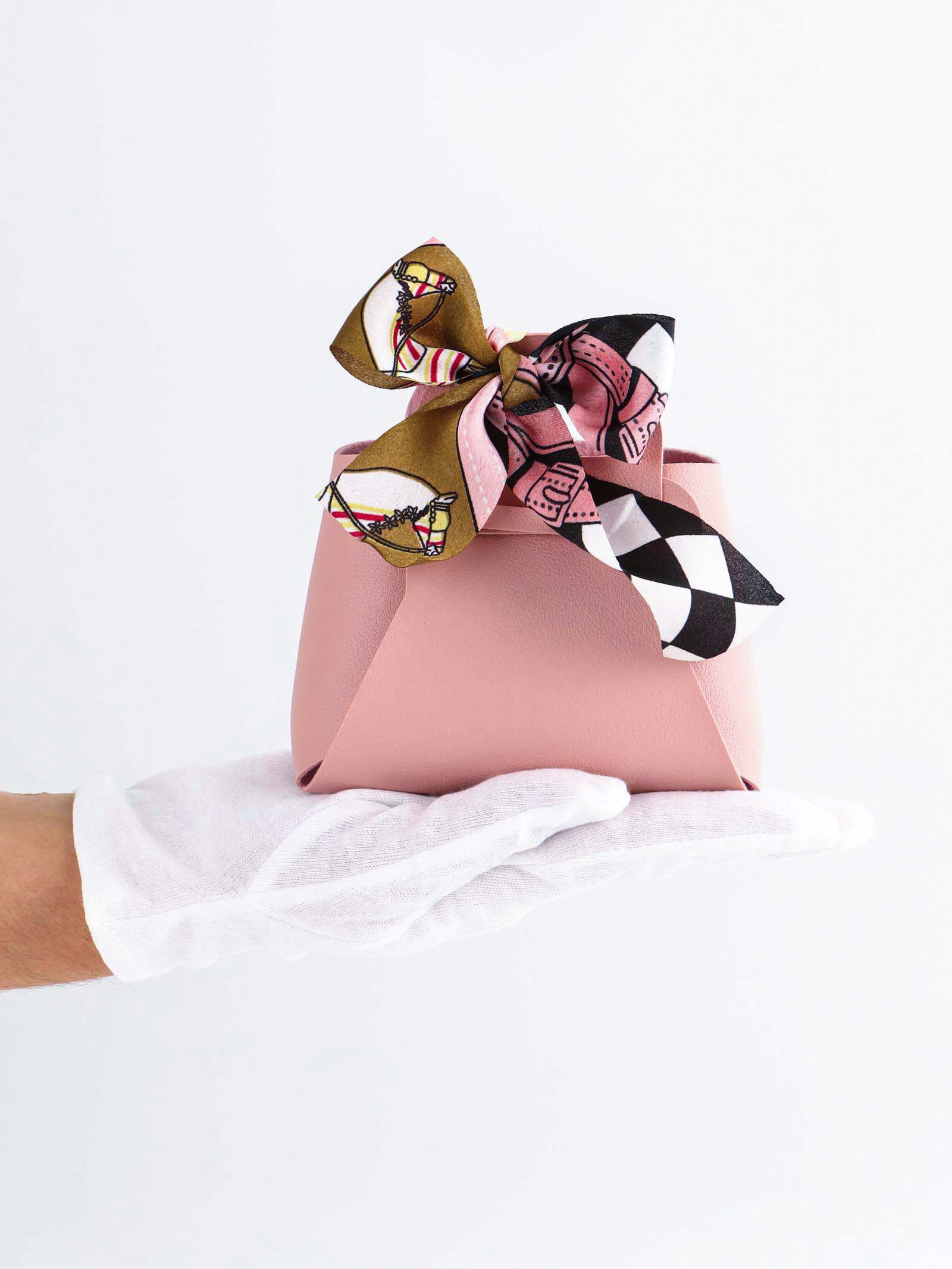 Кожаная подарочная сумочка для бижутерии и сувениров, розовая с бантом, 12x13x5.5 см., UPAK LAND, Китай