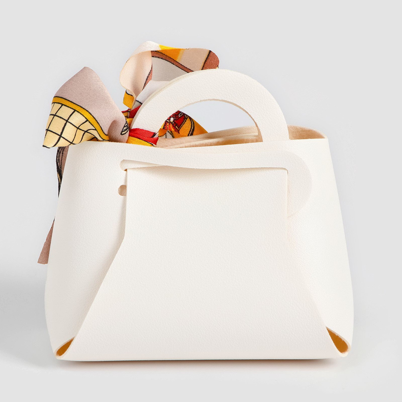 Кожаная подарочная сумочка для бижутерии и сувениров, белая с бантом, 12x13x5.5 см., UPAK LAND, Китай