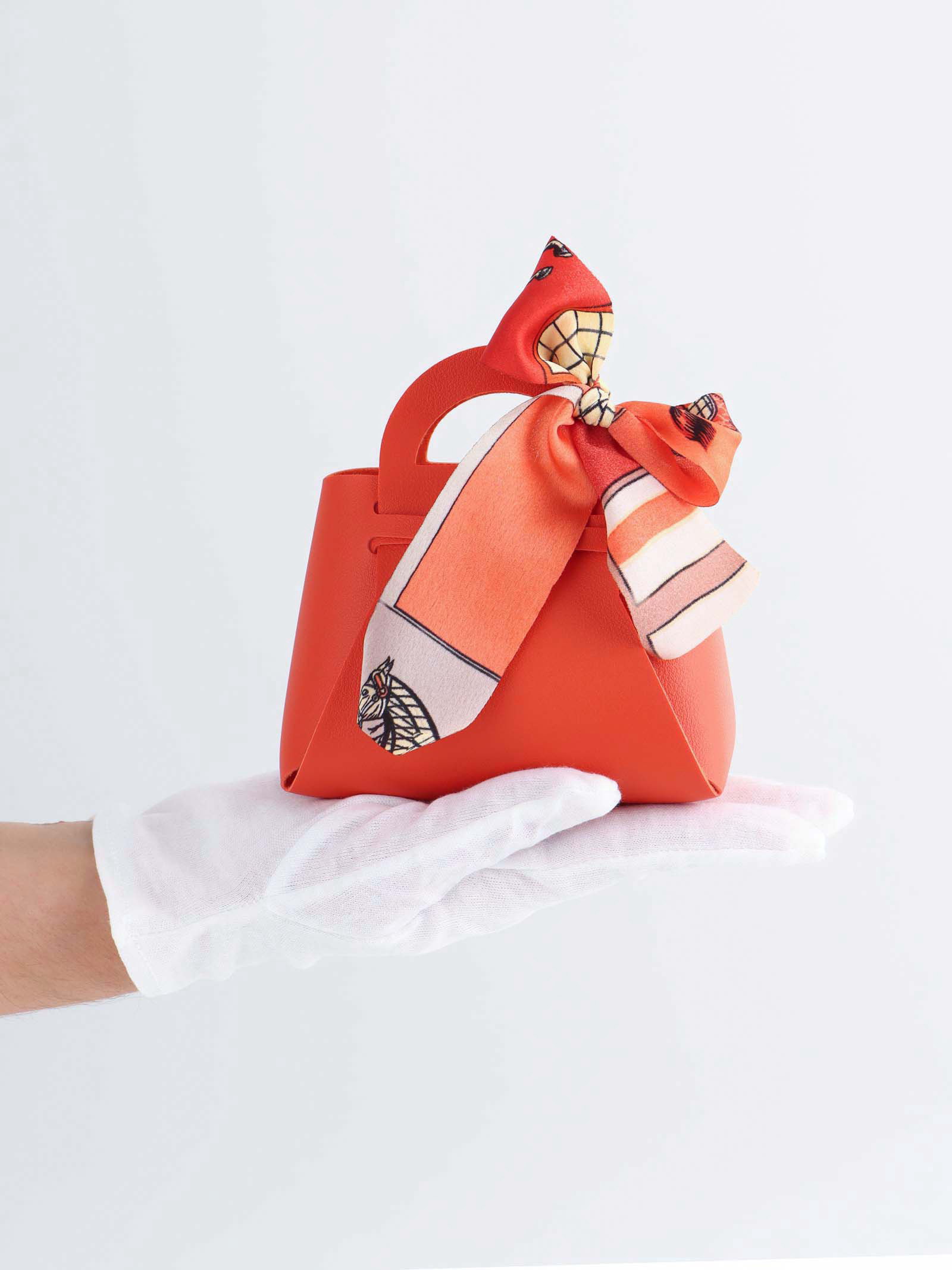 Кожаная подарочная сумочка для бижутерии и сувениров, оранжевая с бантом, 12x13x5.5 см., UPAK LAND, Китай