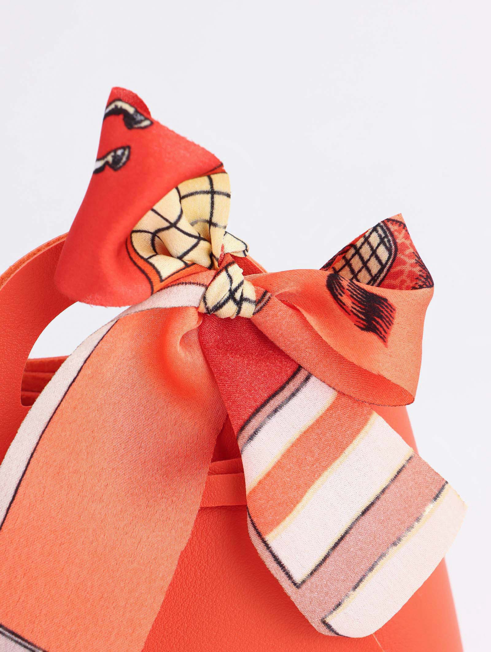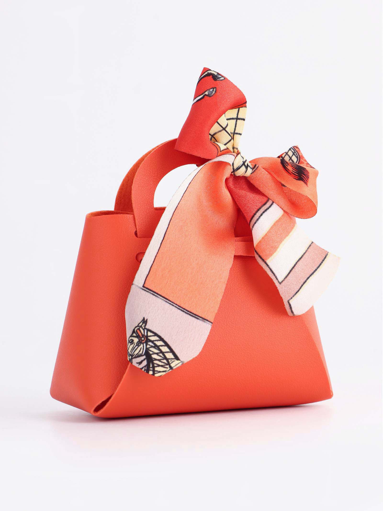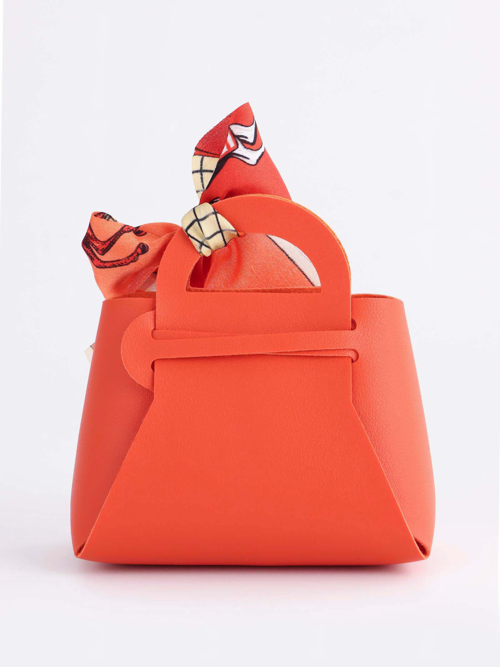 Кожаная подарочная сумочка для бижутерии и сувениров, оранжевая с бантом, 12x13x5.5 см., UPAK LAND, Китай
