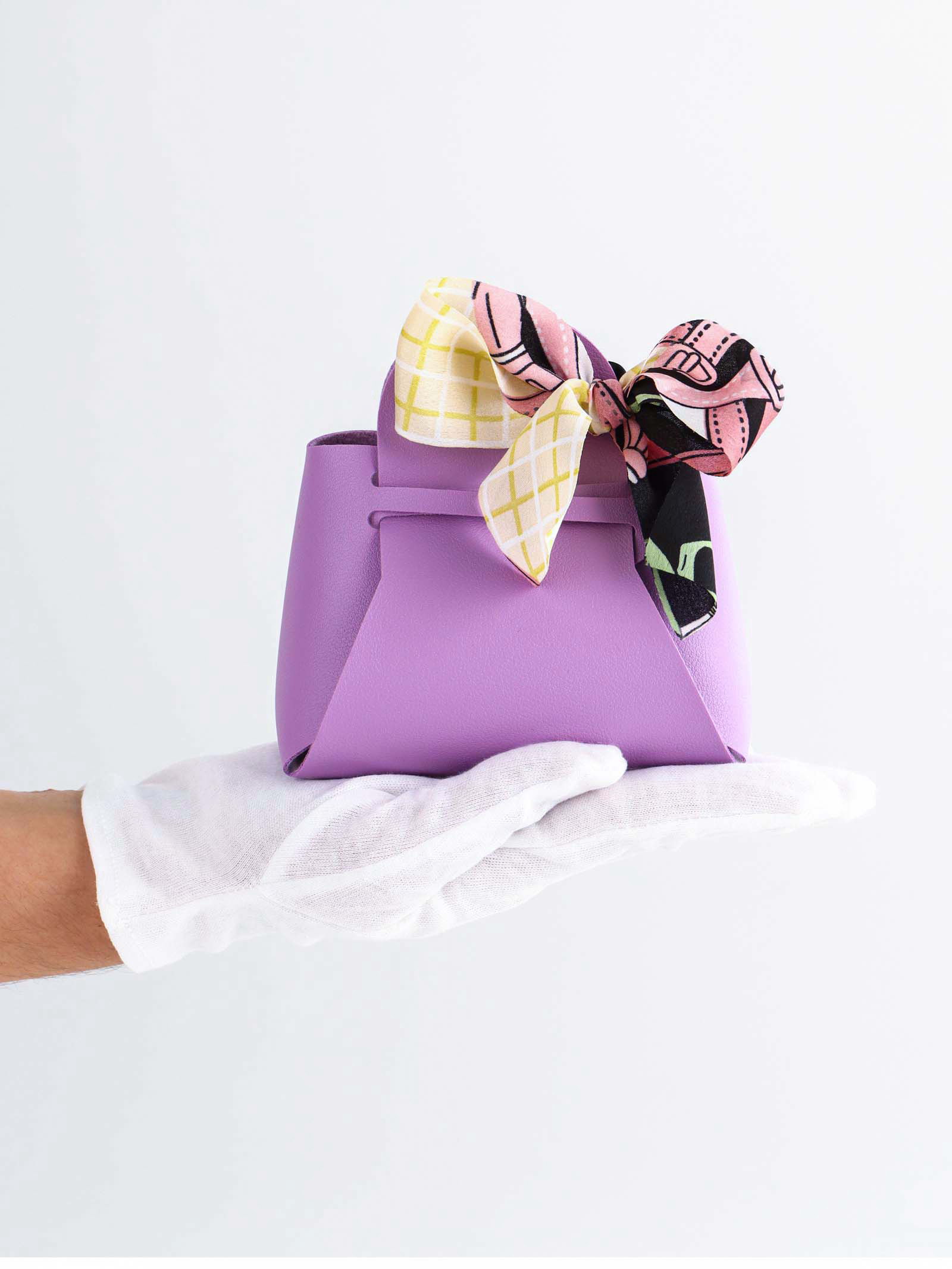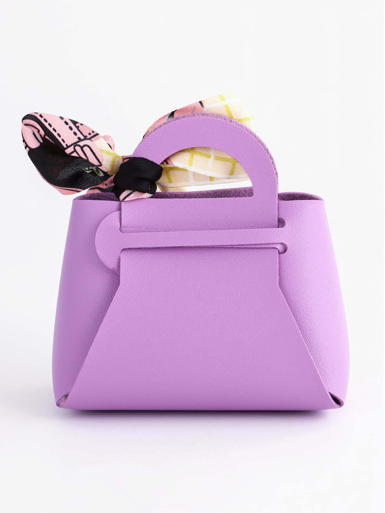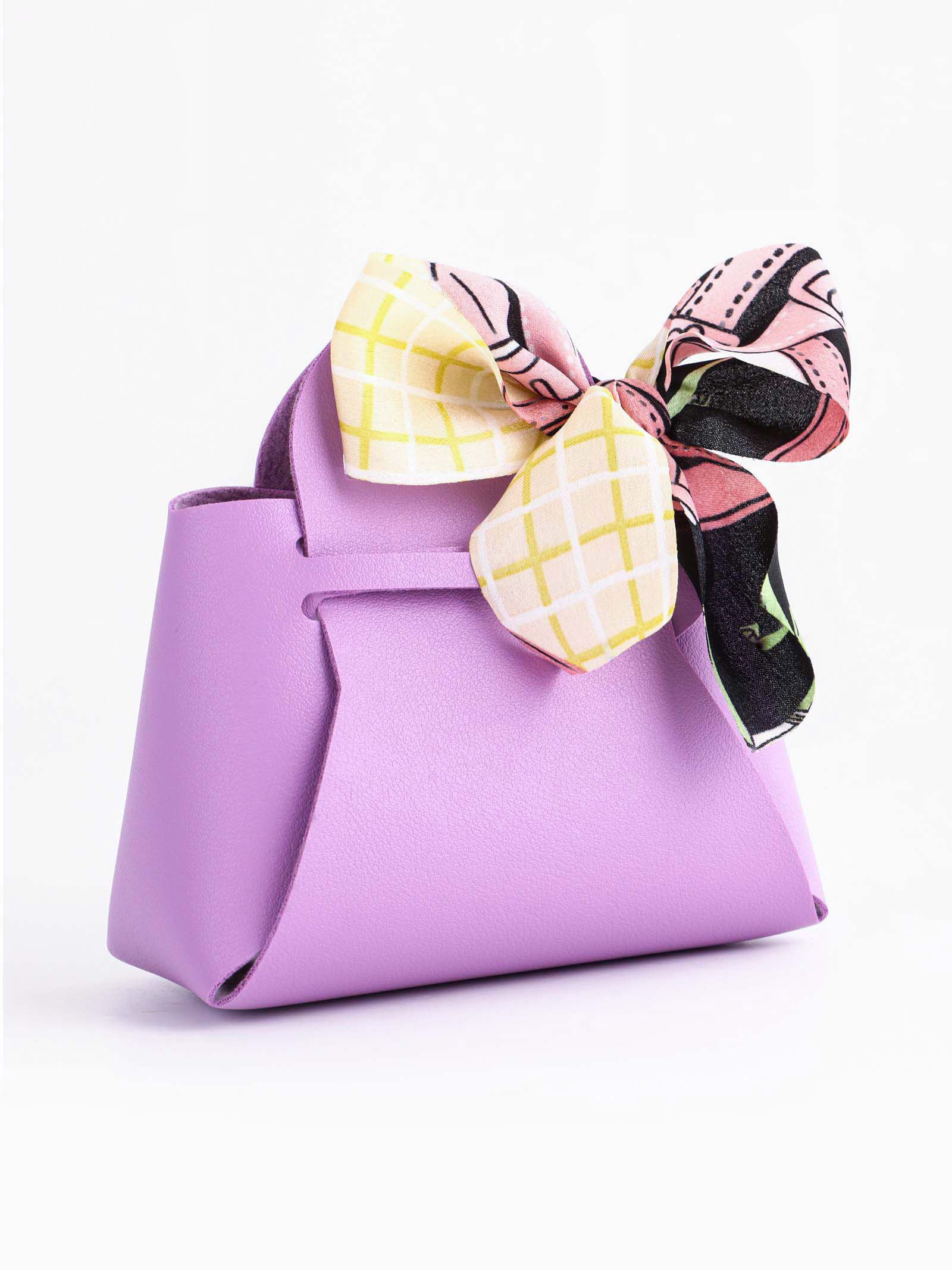 Кожаная подарочная сумочка для бижутерии и сувениров, сиреневая с бантом, 12x13x5.5 см., UPAK LAND, Китай