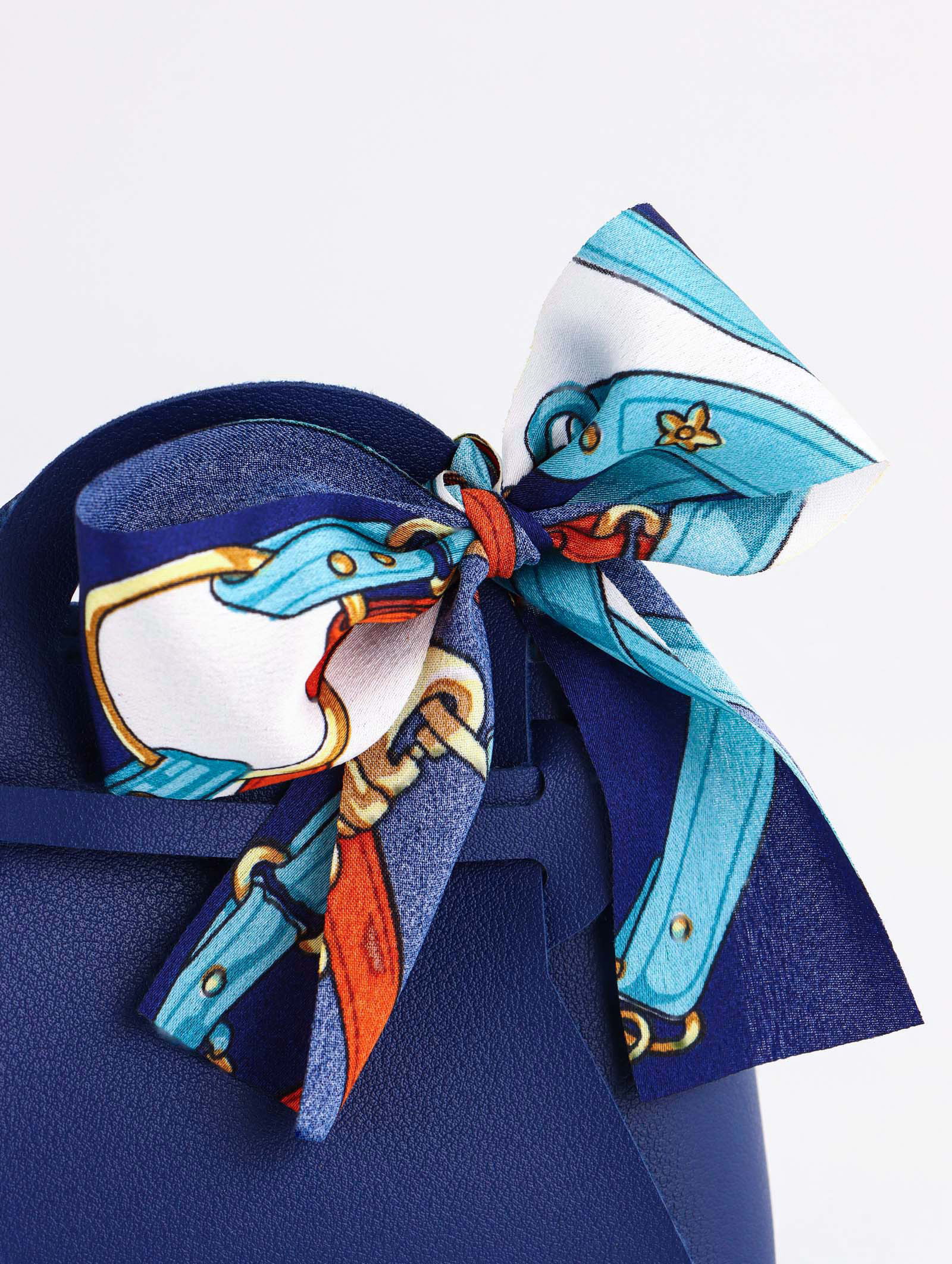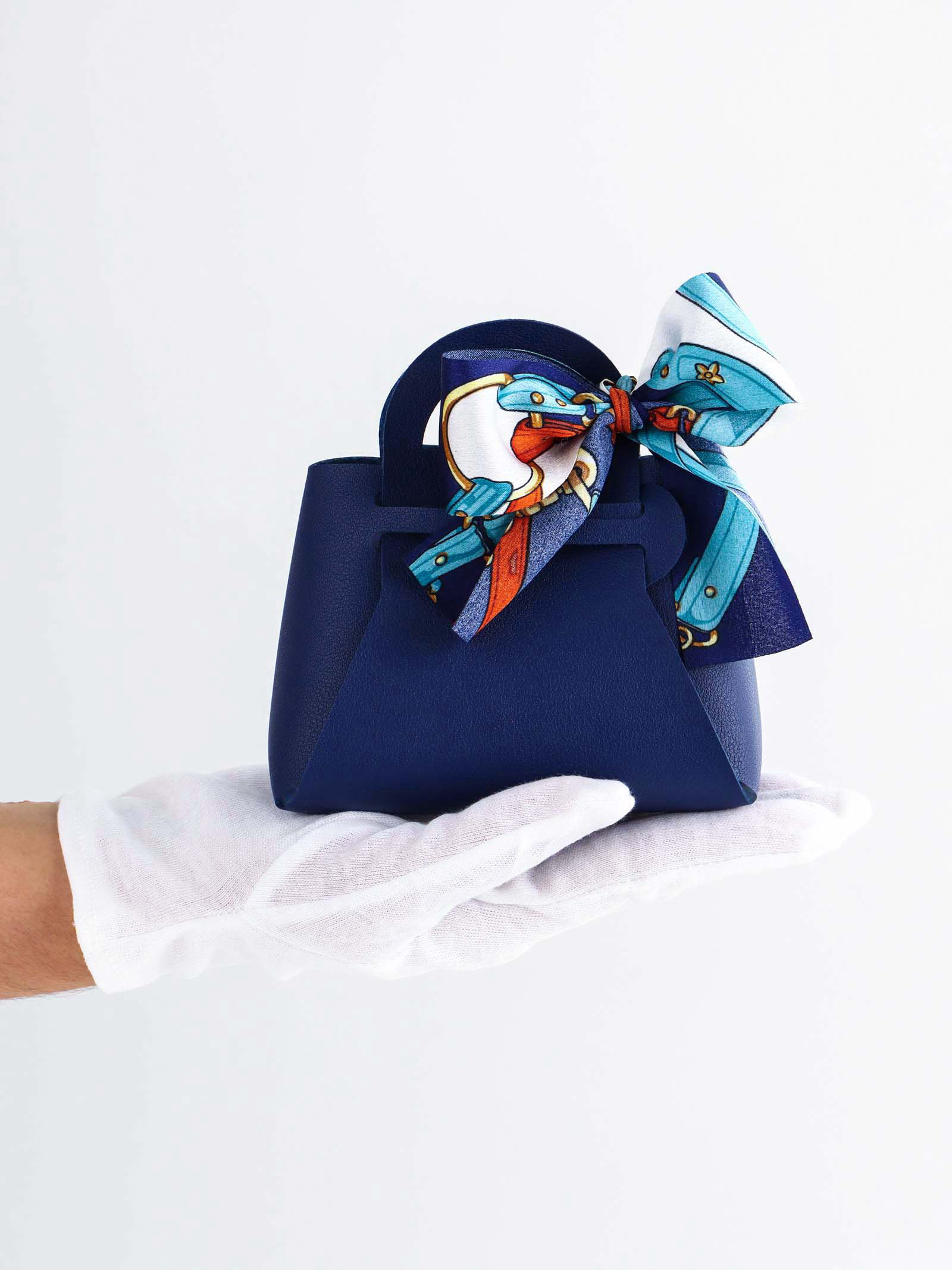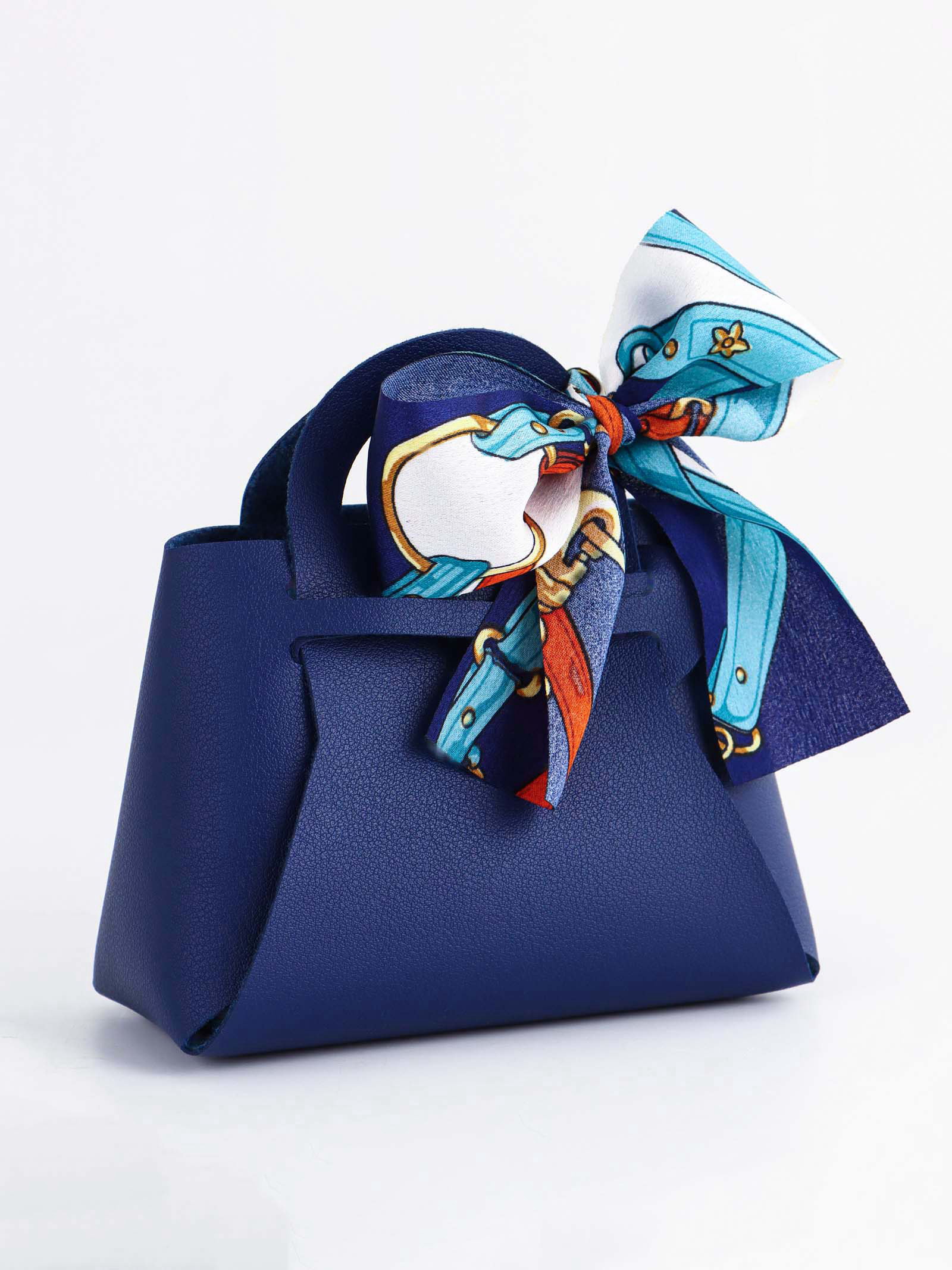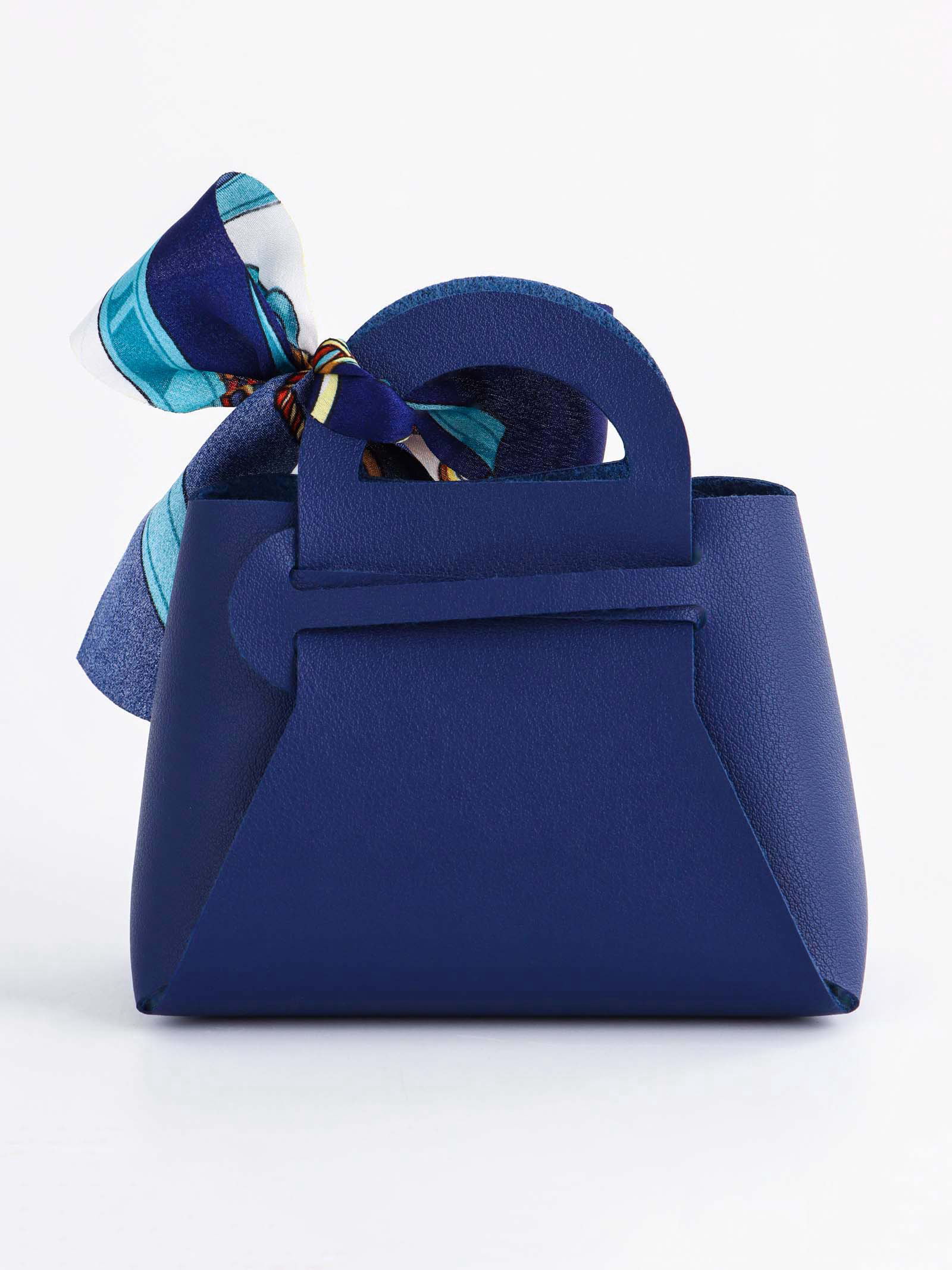 Кожаная подарочная сумочка для бижутерии и сувениров, глубокий синий с бантом, 12x13x5.5 см., UPAK LAND, Китай