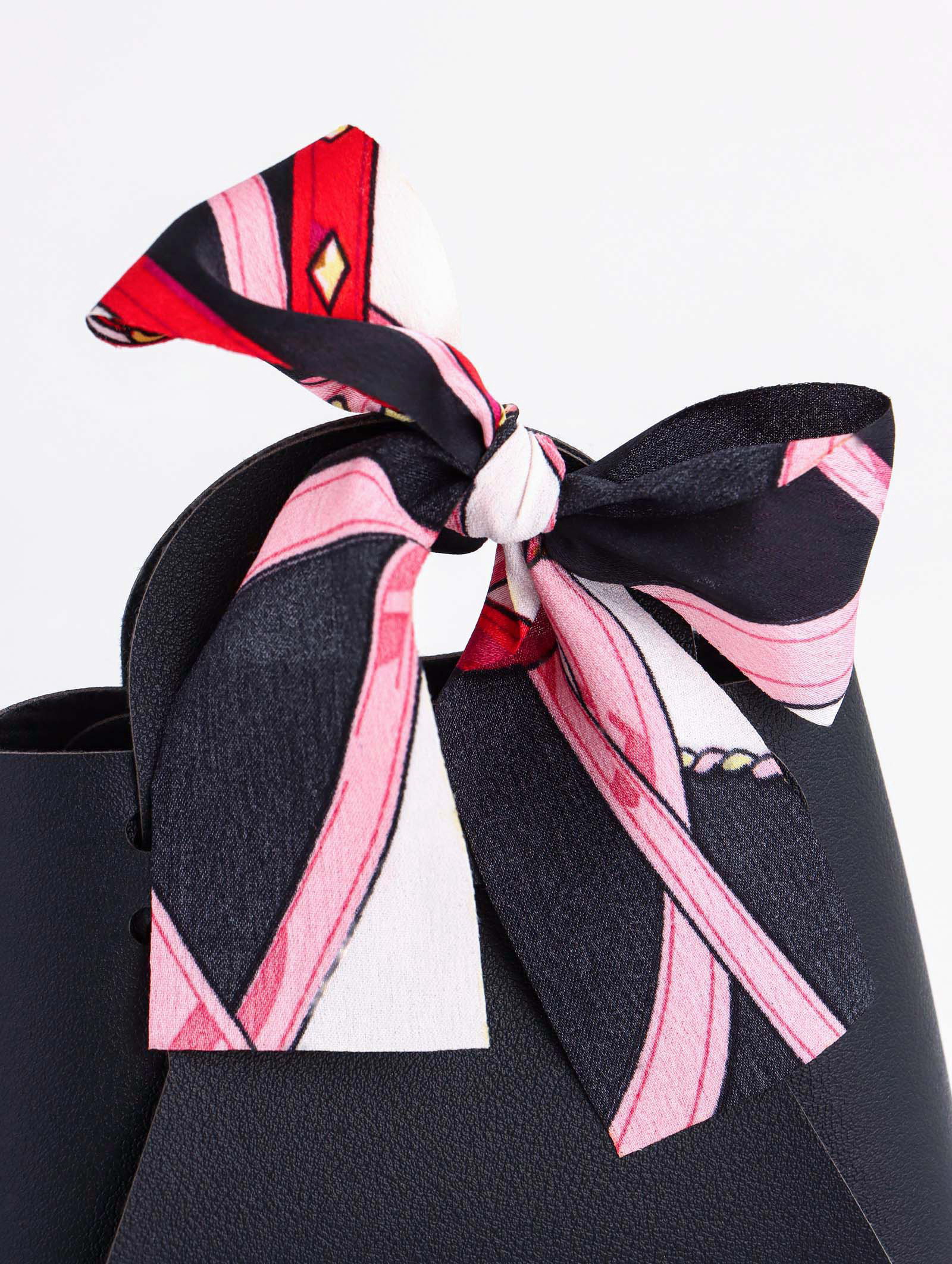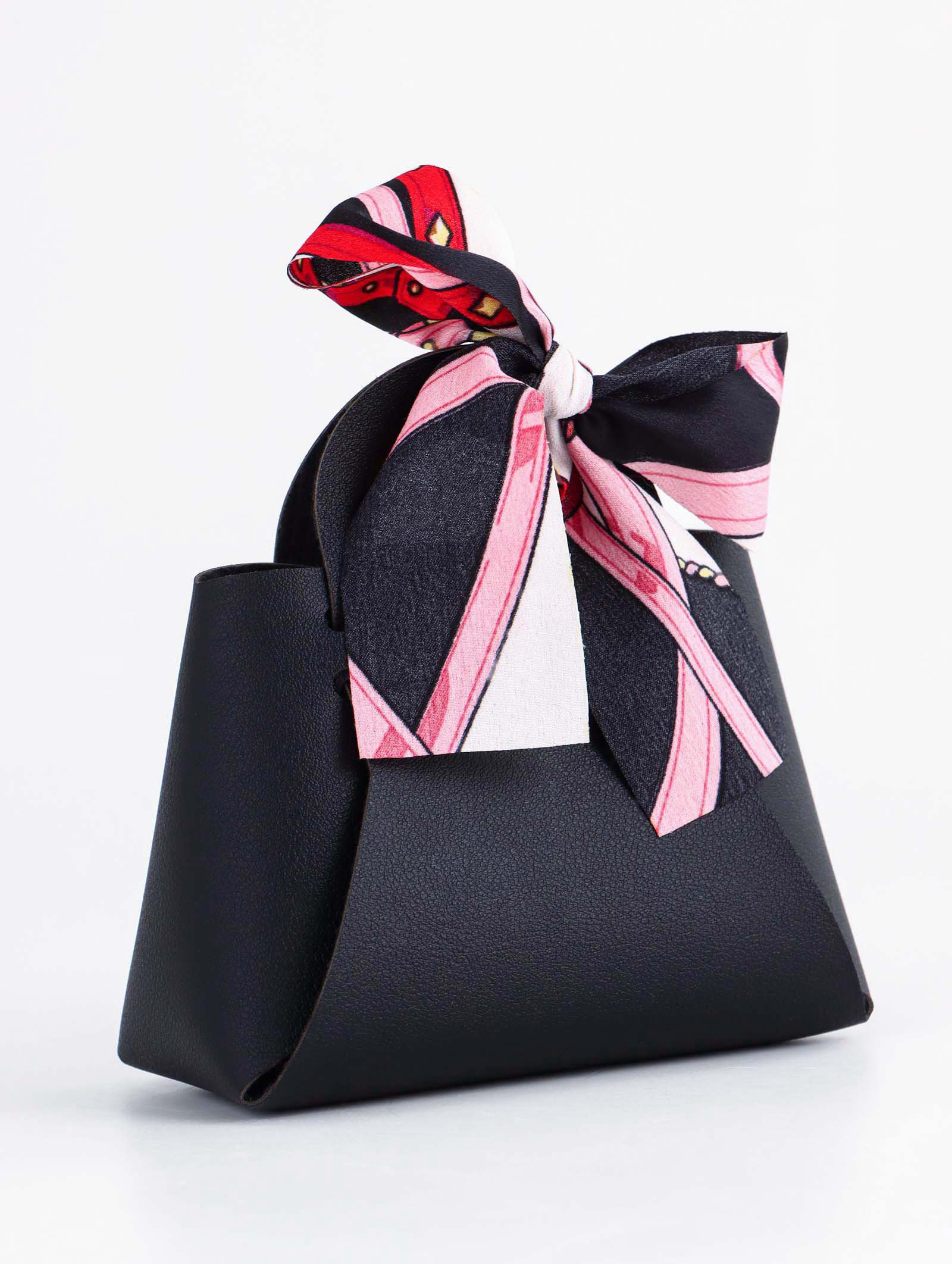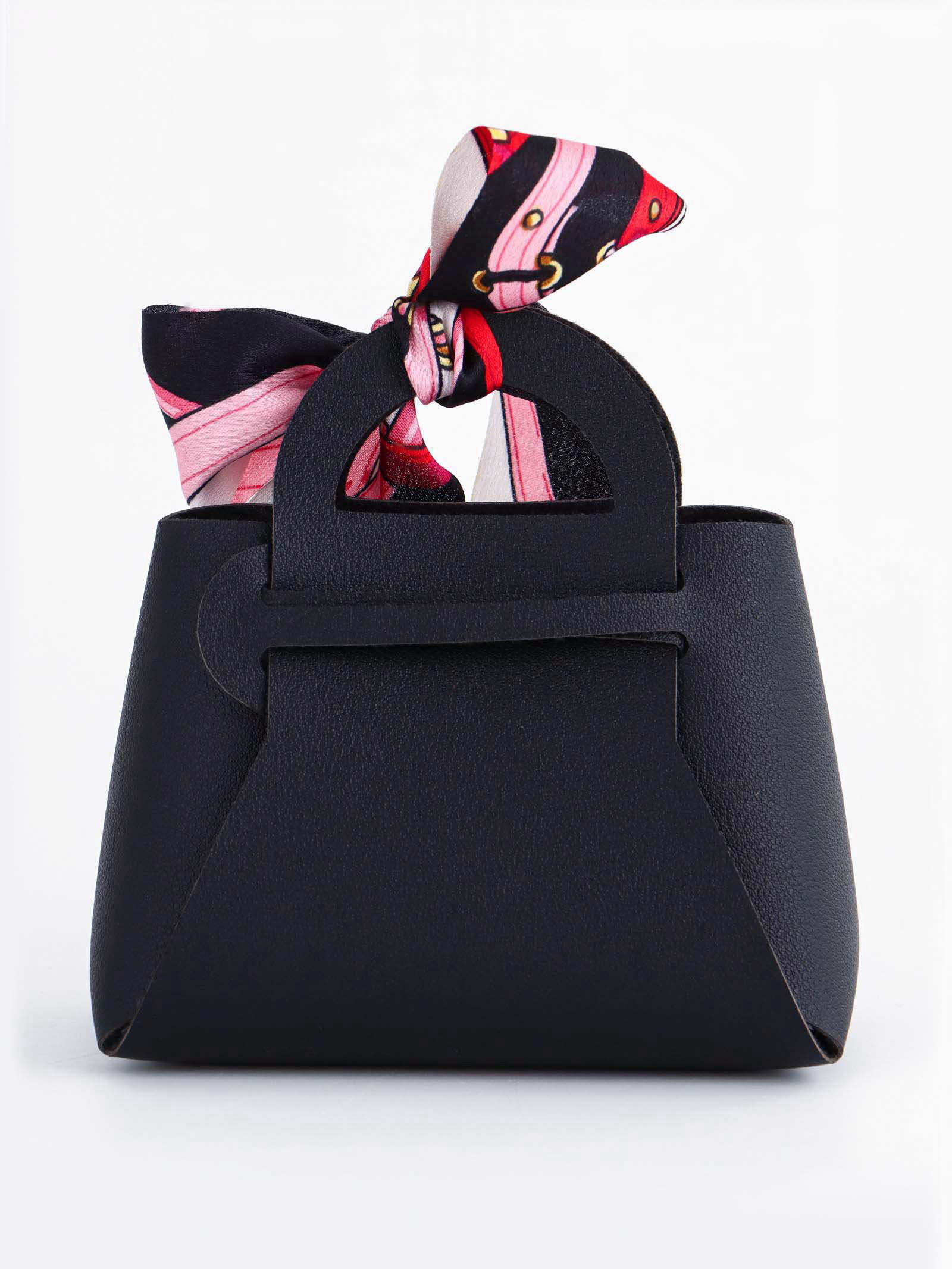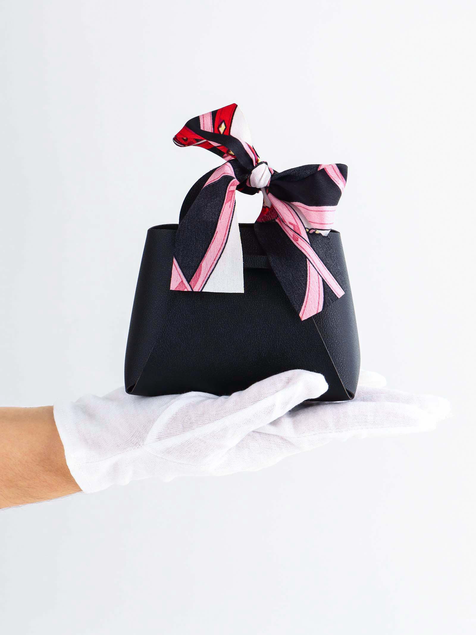 Кожаная подарочная сумочка для бижутерии и сувениров, чёрная с бантом, 12x13x5.5 см., UPAK LAND, Китай
