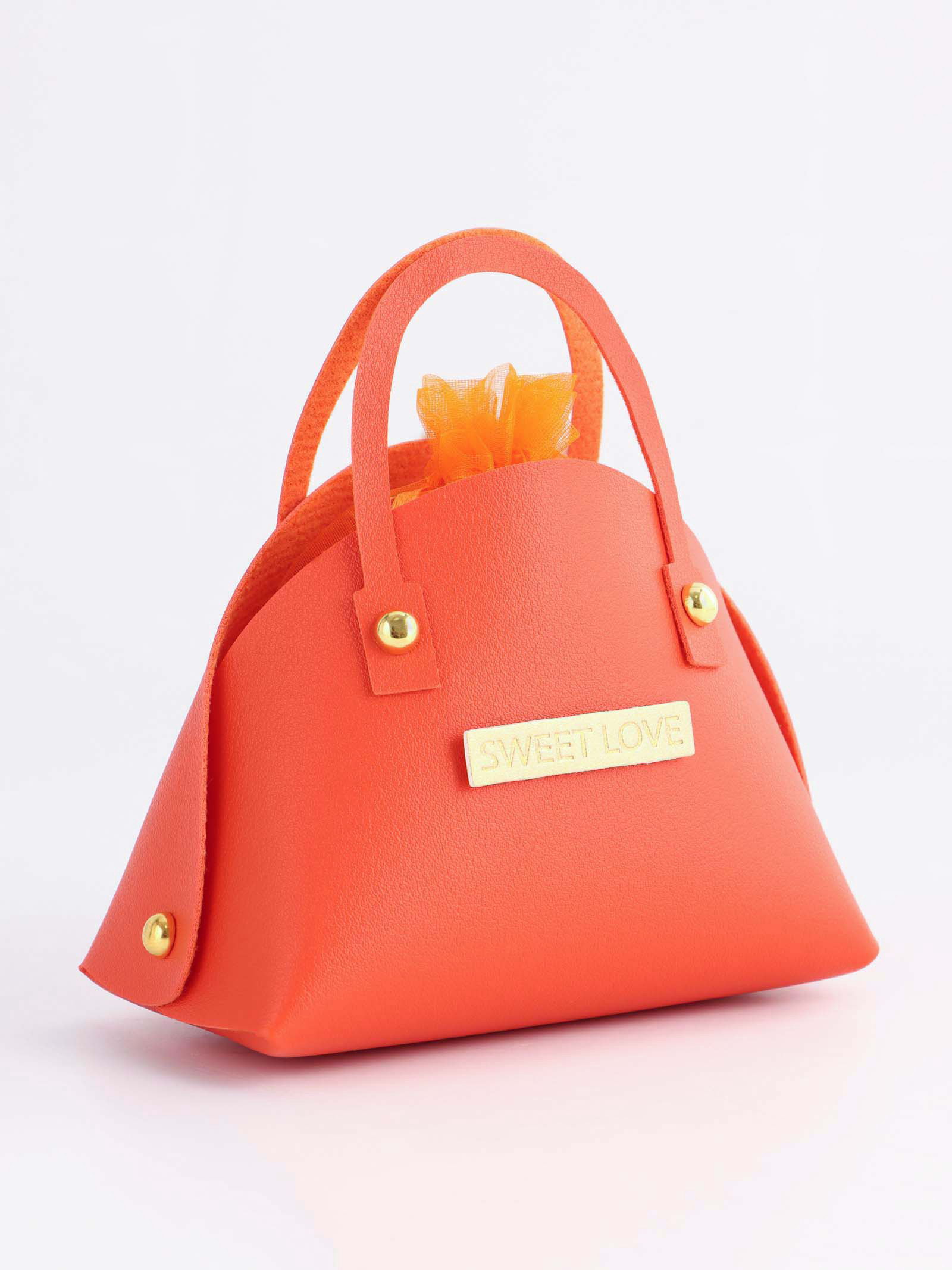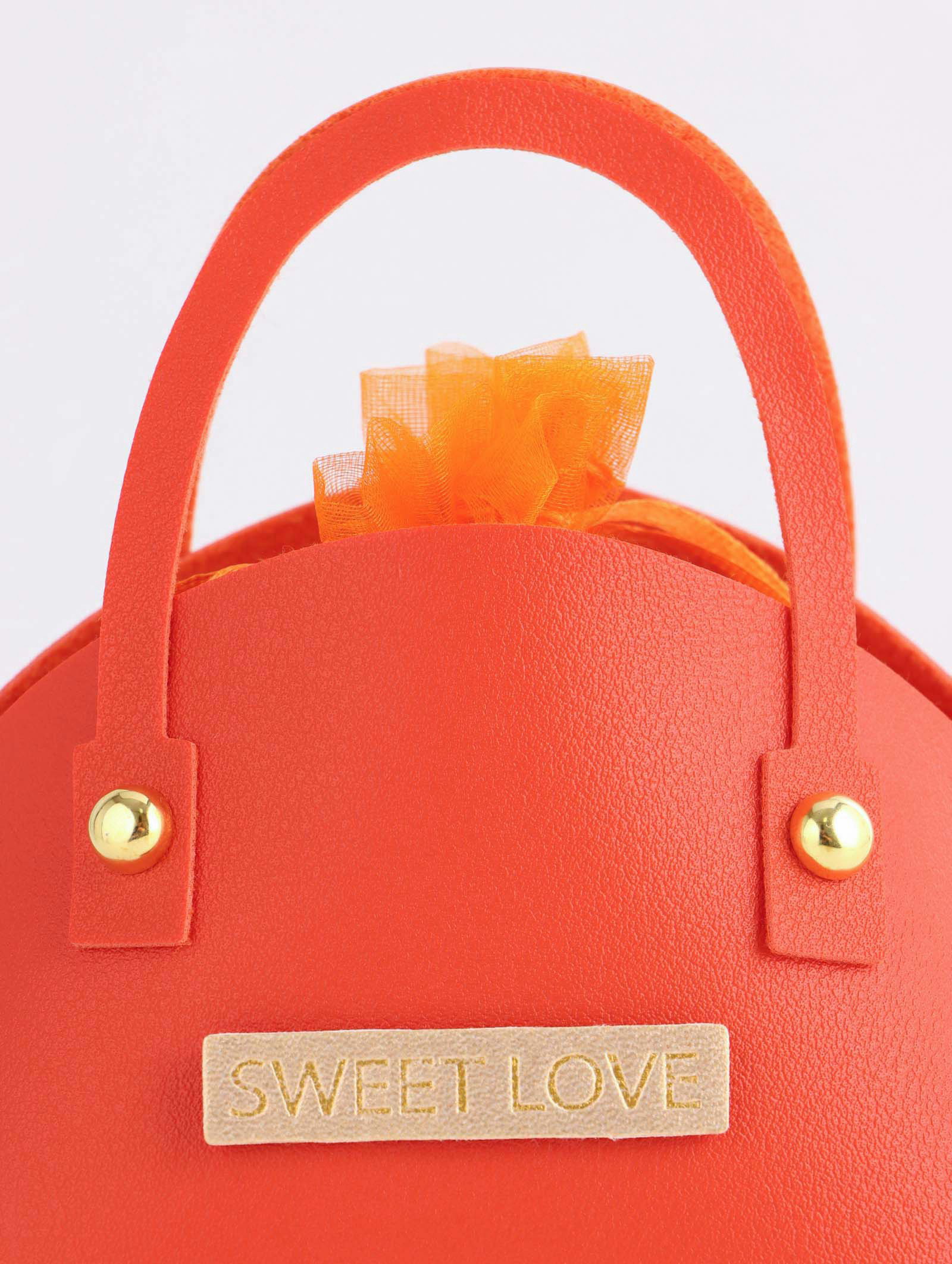 Кожаная подарочная сумочка для бижутерии и сувениров, оранжевая с мешочком, 14x6.5x12.8 см, 6.5x14x12.8 см., UPAK LAND, Китай