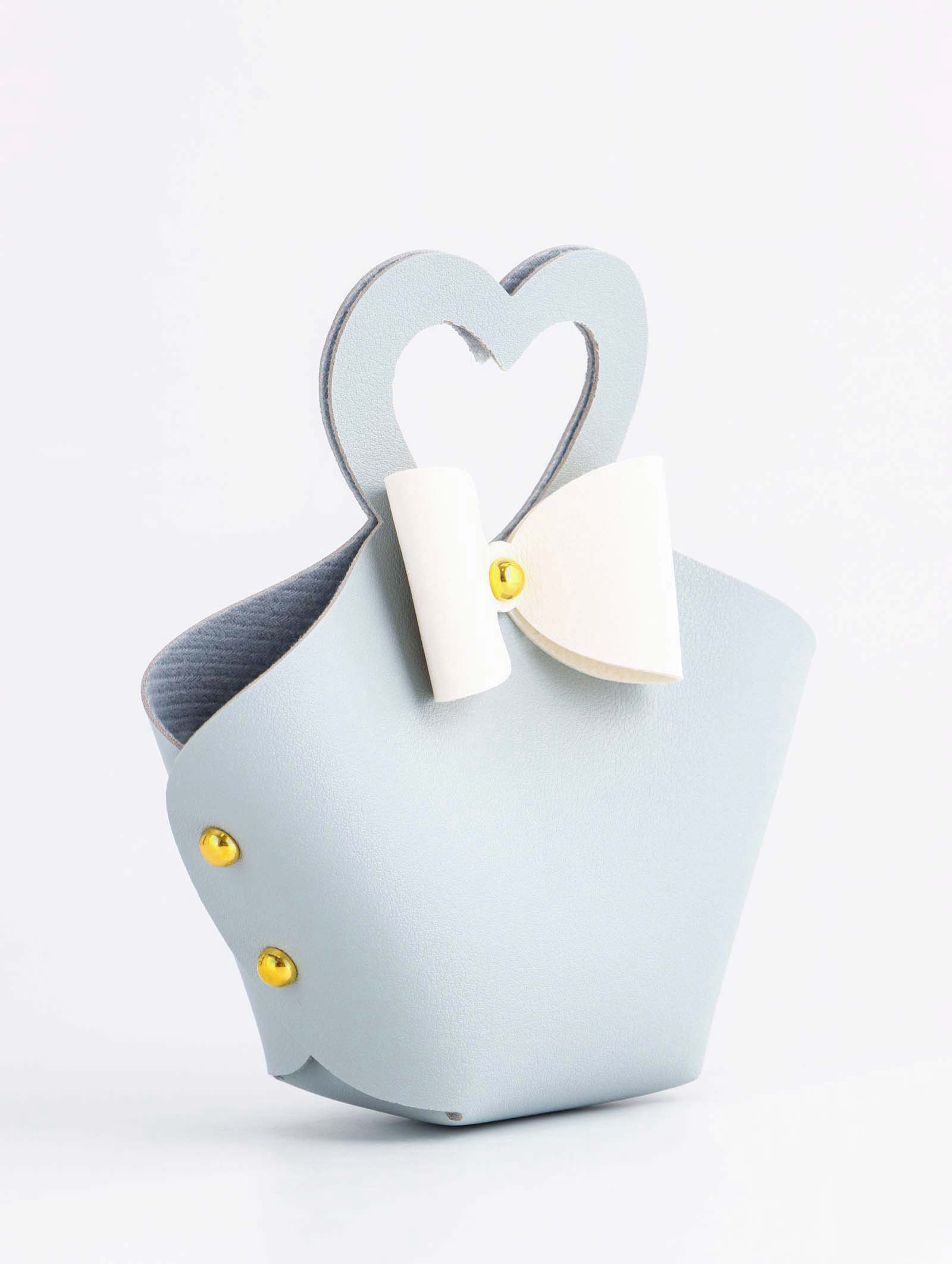 Кожаная подарочная сумочка для бижутерии и сувениров, небесно - голубая с бантом, 10.5x5x6 см, 5x10.5x6 см., UPAK LAND, Китай