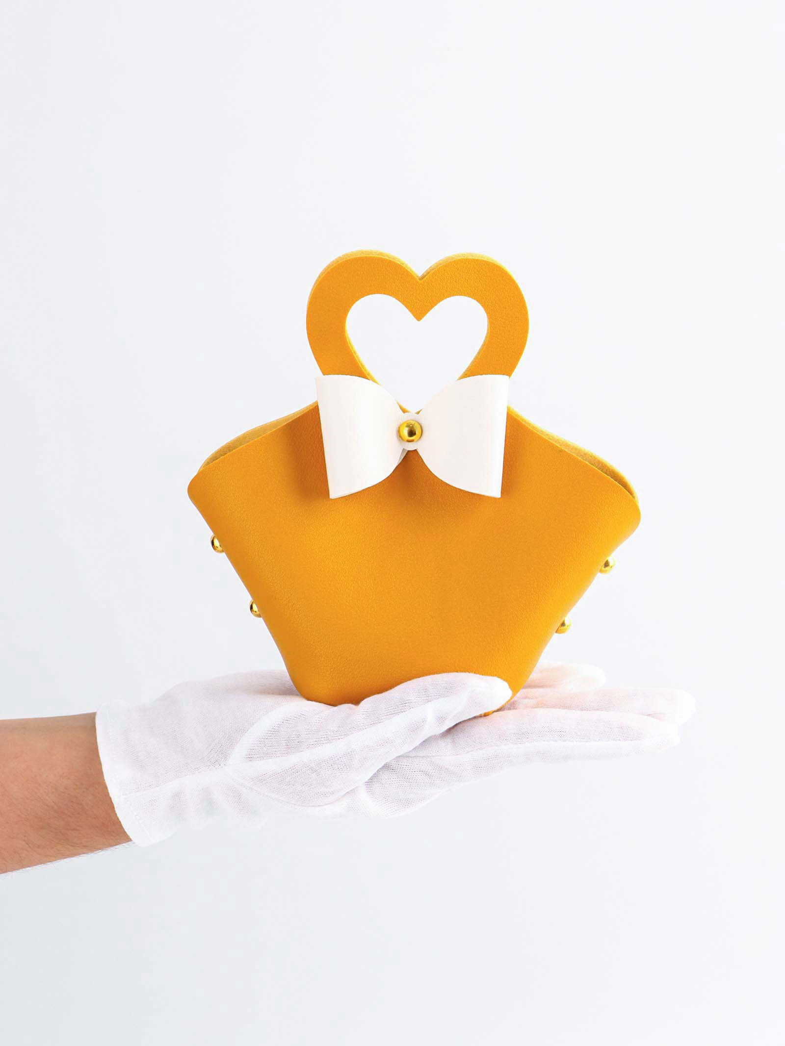 Кожаная подарочная сумочка для бижутерии и сувениров, жёлтая с бантом, 10.5x5x6 см, 5x10.5x6 см., UPAK LAND, Китай