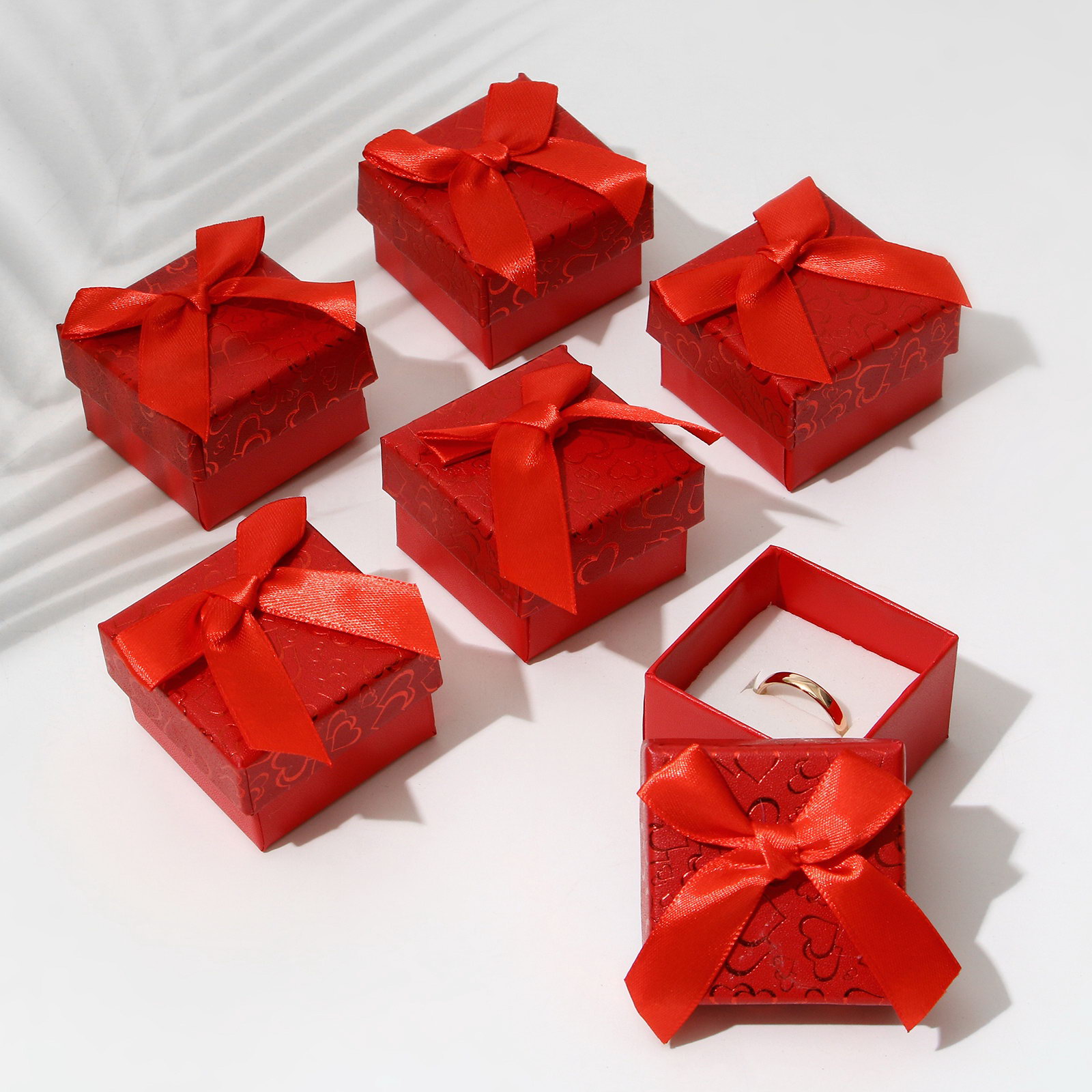 Набор коробочек подарочных под кольцо "Блестящие сердца", 6 шт. 5x5 см, красный, 5x5x2 см., Китай