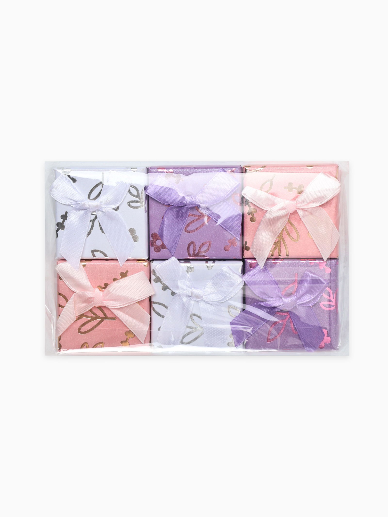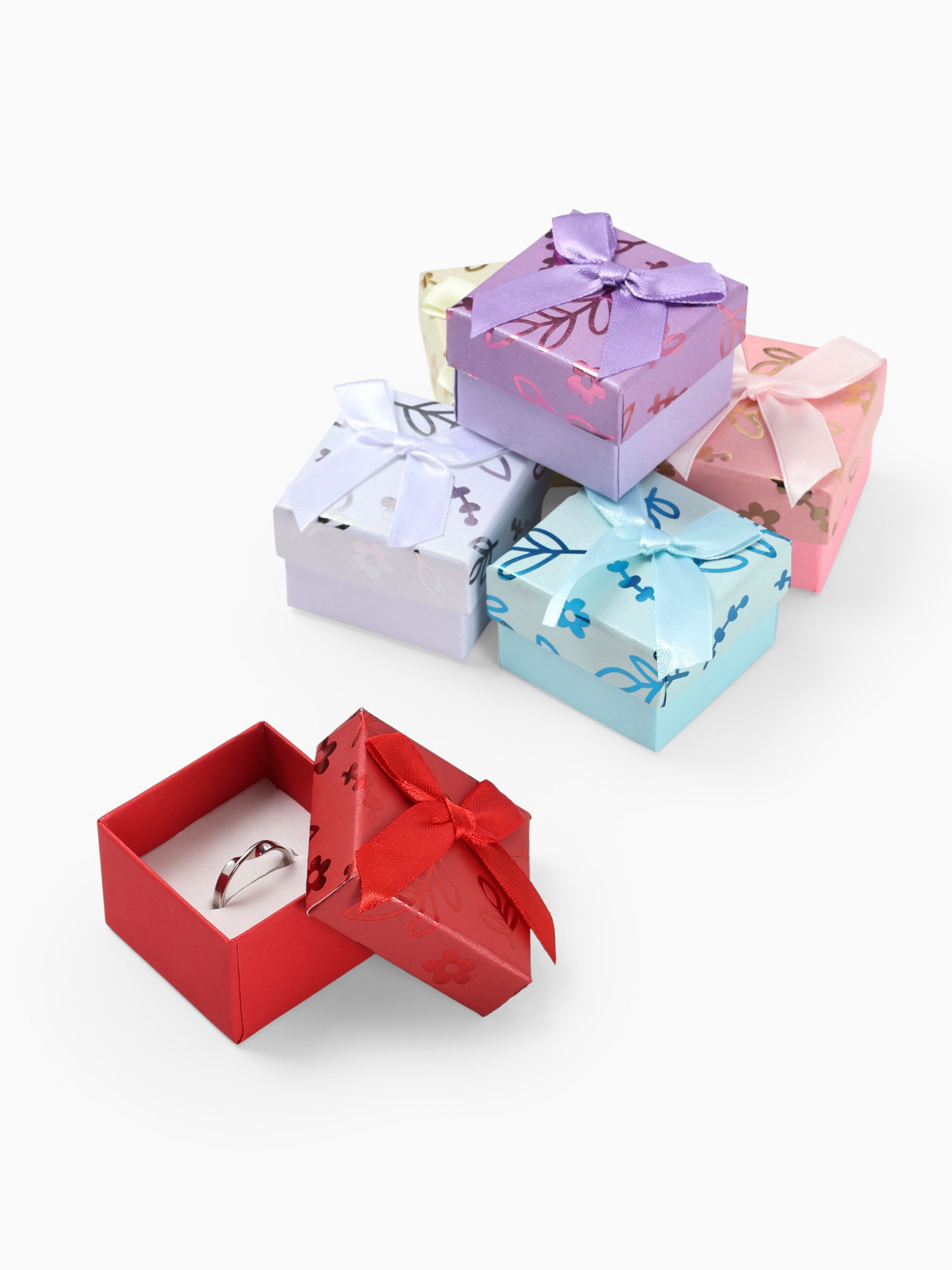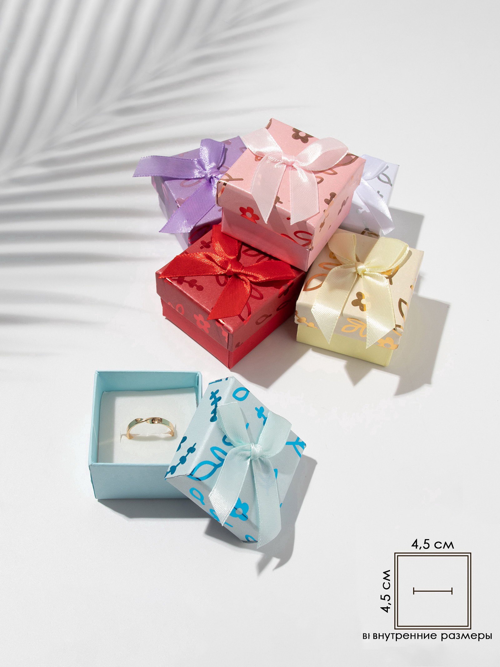 Набор коробочек подарочных 6 шт. под серьги, кольцо "Цветы и листья", 5x5 см, МИКС, 5x5x3.5 см., Китай