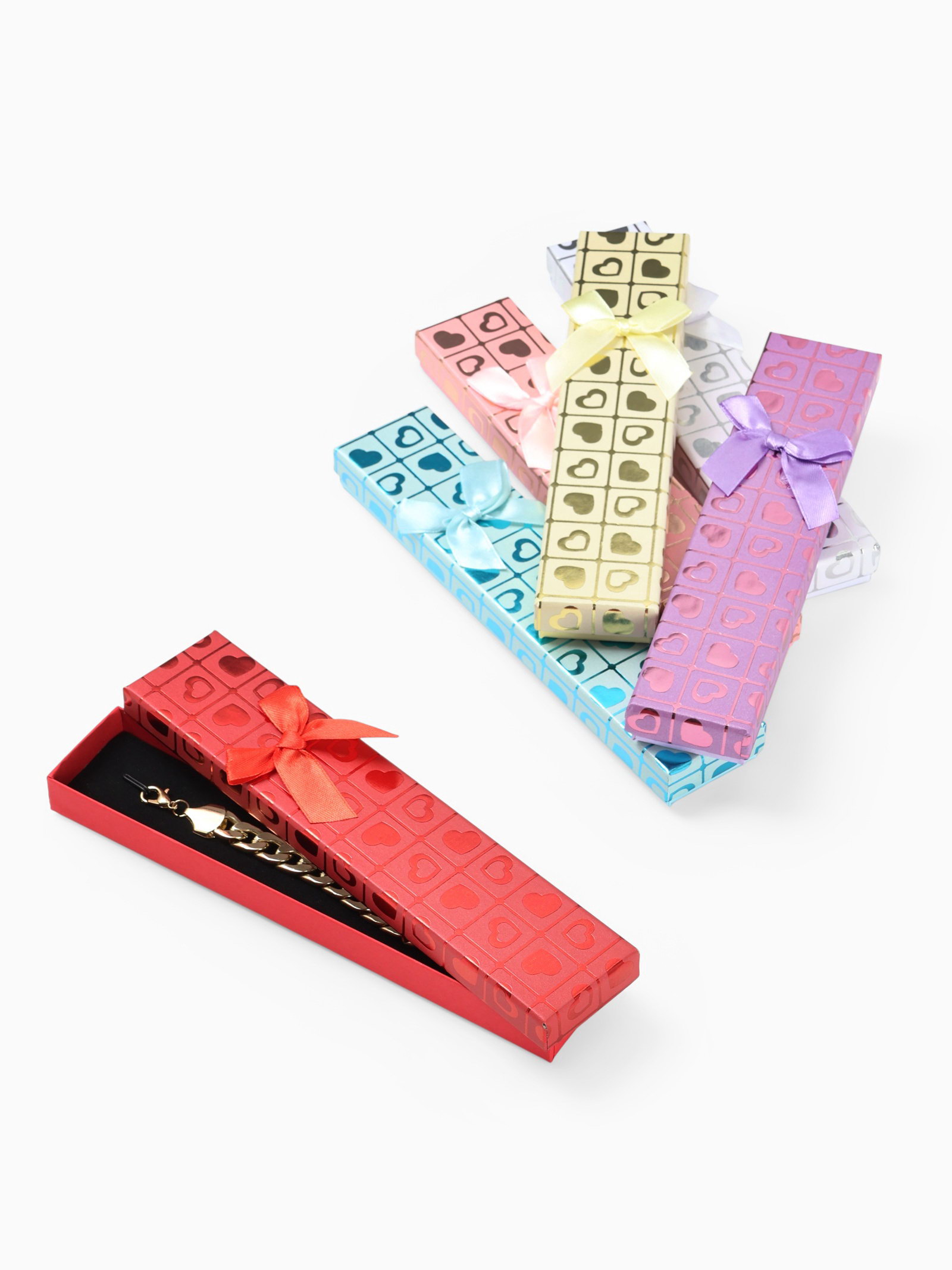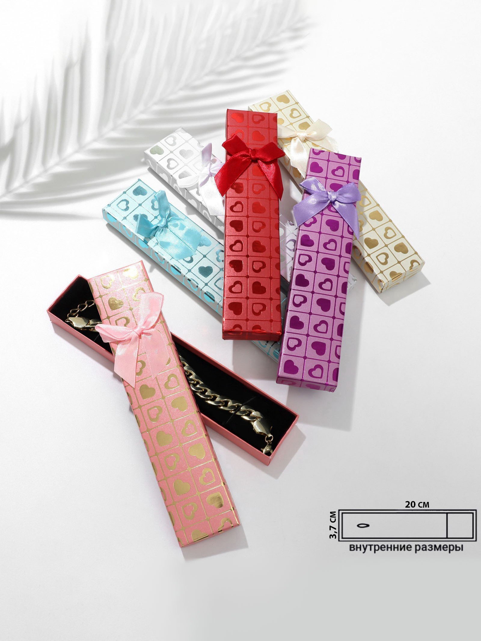 Набор коробочек под браслет, цепочку, часы, 6 шт. "Сердца", 21x4 см, МИКС, 4x21x2.5 см., Китай
