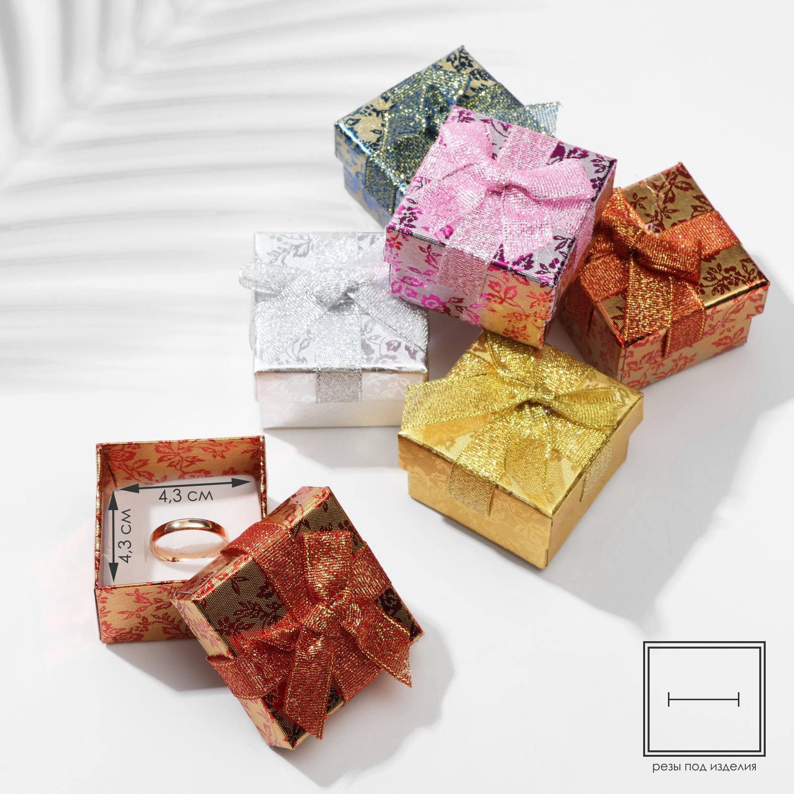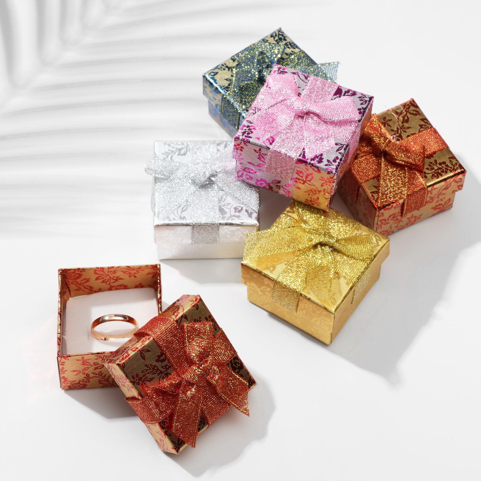 Набор коробочек подарочных 6 шт. под кольцо "Розы блестящие" с бантом, 5x5, МИКС, 5x5.5x3.5 см., Китай