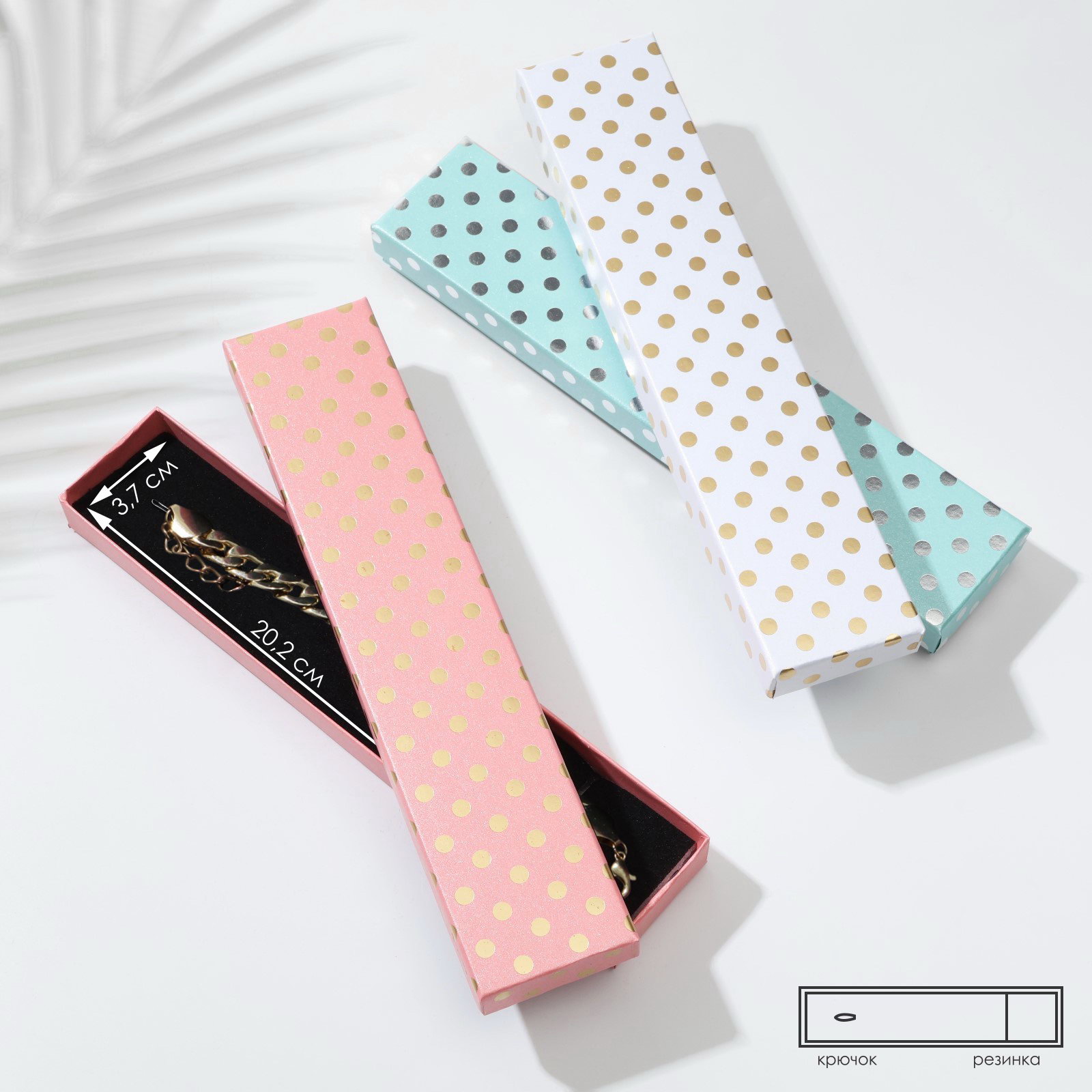 Вид: Под браслеты, Под цепочки, кулоны, Под часы Размер упаковки: 21 x 26.5 x 2.3 см. tnved: 4819500000 Размер, см: 21 x 4 Цвет вставки: Чёрный Дизайн: С рисунком, надписью Набор: Да Цвет: МИКС Вставка: Да С бантом: Нет Размер: Средний (18-24 см) см Прекрасная подача прекрасному подарку! Набор уникальных подарочных коробочек, созданный специально для украшений, теперь доступен в элегантном исполнении "горошинки золотые". Каждая коробка имеет удобные размеры 21х4 см, позволяющие бережно хранить и демонстрировать любые мелкие изделия, включая браслеты, цепочки и часы. Богатая палитра расцветок добавляет выразительности, подчеркивая индивидуальные предпочтения получателей. Основные преимущества: