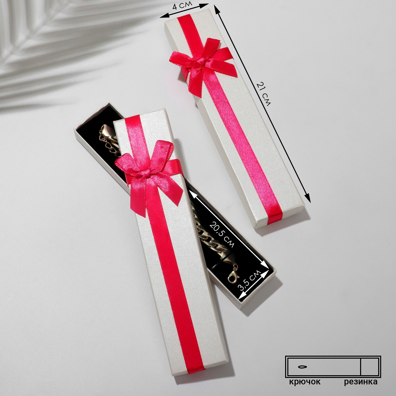 Вид: Под браслеты, Под цепочки, кулоны, Под часы Размер упаковки: 21 x 27.5 x 2 см. tnved: 4819500000 Размер, см: 21 x 4 Набор: Да Цвет вставки: Чёрный Дизайн: Однотонный Вставка: Да Цвет: Белый С бантом: Да Размер: Средний (18-24 см) см Откройте магию элегантного преподнесения подарков! Красивые подарочные коробочки в нежных бело-розовых оттенках, созданные специально для деликатных украшений, таких как браслеты, цепочки и часы. Размер 21х4 см идеально соответствует любым небольшим аксессуарам, подчеркивая их ценность и элегантность. Внутри каждую вещь ожидает уютная чёрная вставка, надежно фиксирующая изделие и дополнительно привлекающая взгляд. Ключевые особенности: