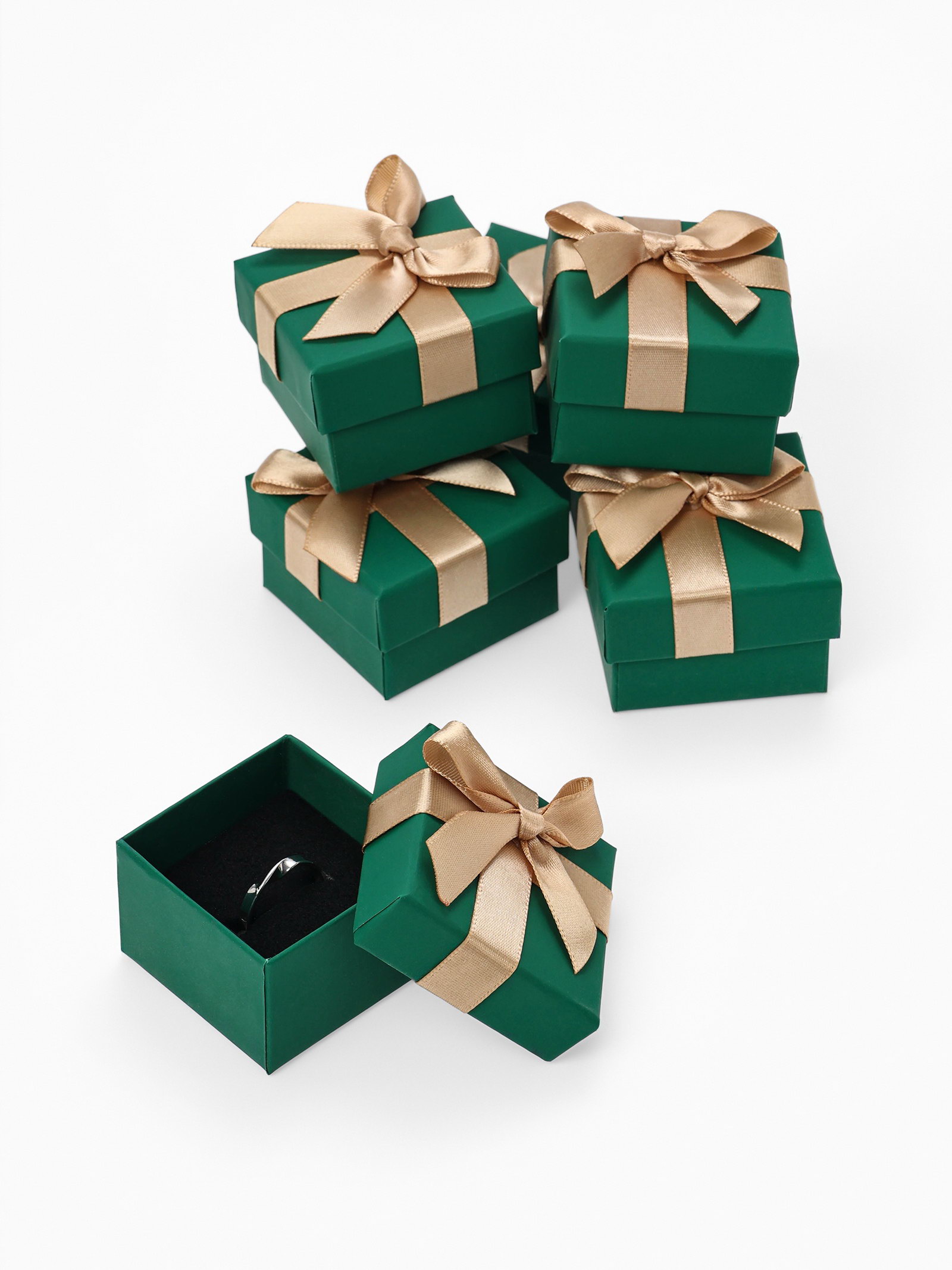 Набор коробочек подарочных 6 шт. под серьги, кольцо "Грин" 5x5x3 см, зелёный, 5x5x3 см., Китай