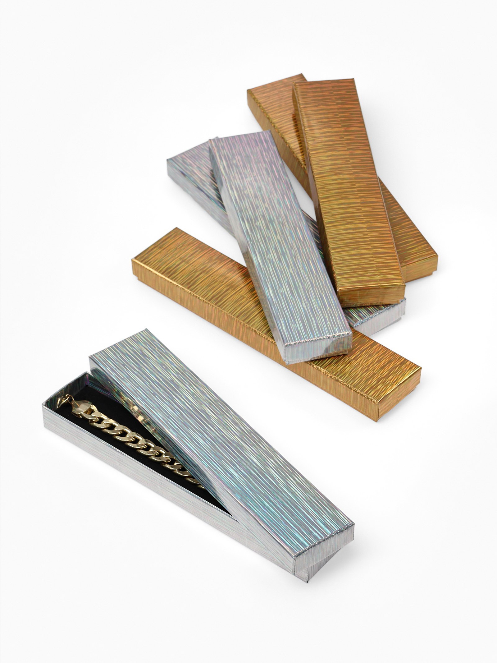 Набор подарочных коробочек 6 шт. под браслет, цепочку, часы"Голография", 21x4 см, цвет МИКС, 4x21x2 см., Китай