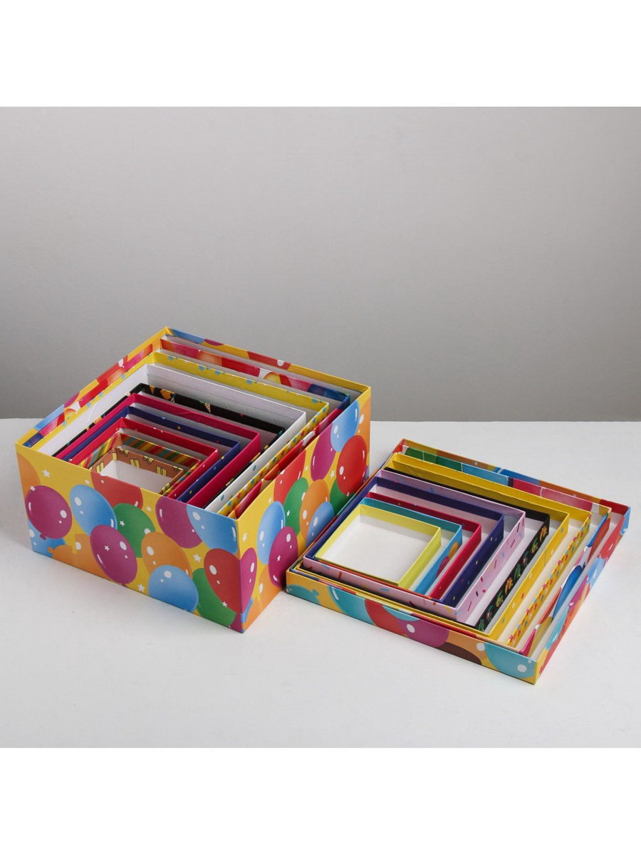 Набор коробок 10 в 1, упаковка подарочная, "Поздравления", 10 x 10 x 6-28 x 28 x 15 см, Дарите Счастье, Россия