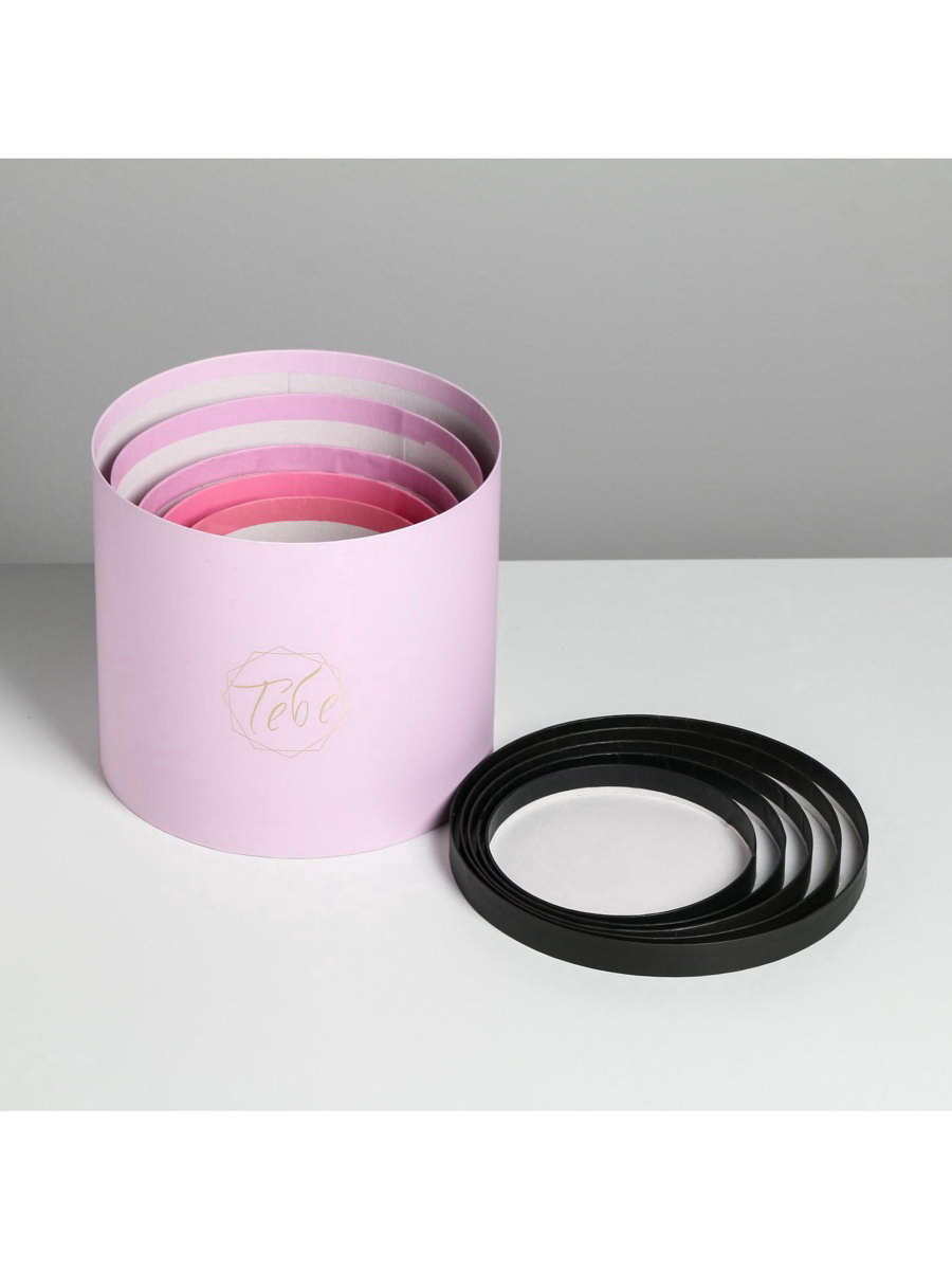Набор коробок для цветов 5 в 1, упаковка подарочная, "Чёрно-розовые", 14 x 14 x 13 см - 22 x 22 x 19.5 см, Дарите Счастье, Россия