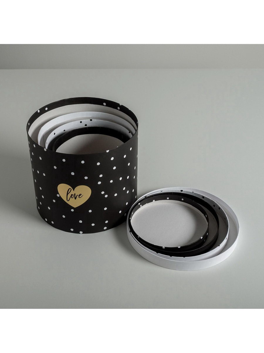 Цвет: Белый, Чёрный Тематика праздника: 14 Февраля, Универсальная тематика Вид: Коробки, Наборы коробок Размер упаковки: 20 x 17.5 x 20 см. Плотность, г/?2: 1000 Толщина, мм: 1.5 Толщина, мм: 1.5 tnved: 4819200000 Температурное ограничение: Нет Форма: Круглая Тематика: Горошек (кружочки) Количество вложений в наборе: 4 в 1 Длина большей коробки, см: 20 Ширина большей коробки, см: 20 Высота большей коробки, см: 17.5 Набор: Да Размер: Средний (18-24 см) см Символ года: Нет