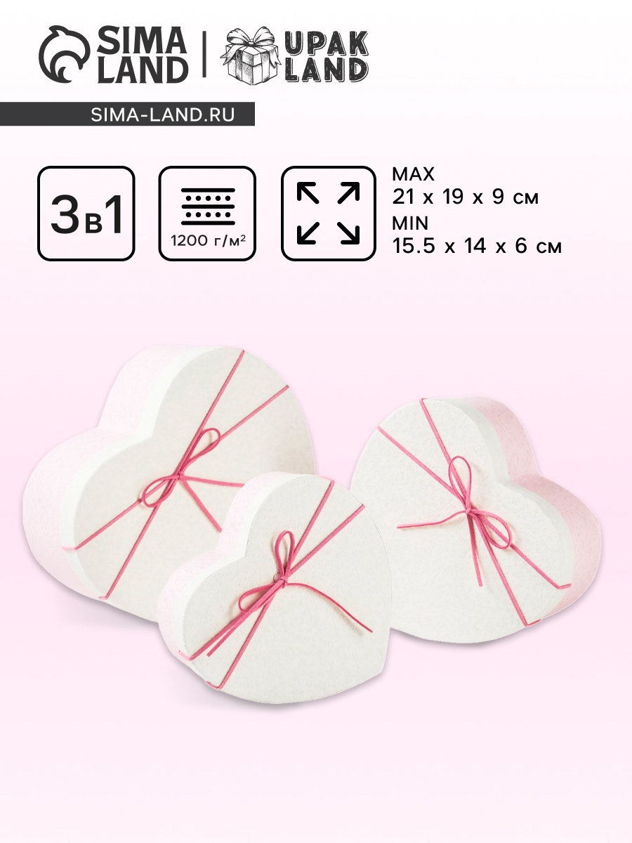 Набор подарочных коробок сердце 3 в 1, красный - белый 21x19x9 - 15.5x14x6 см, 19x21x9 см., UPAK LAND, Китай