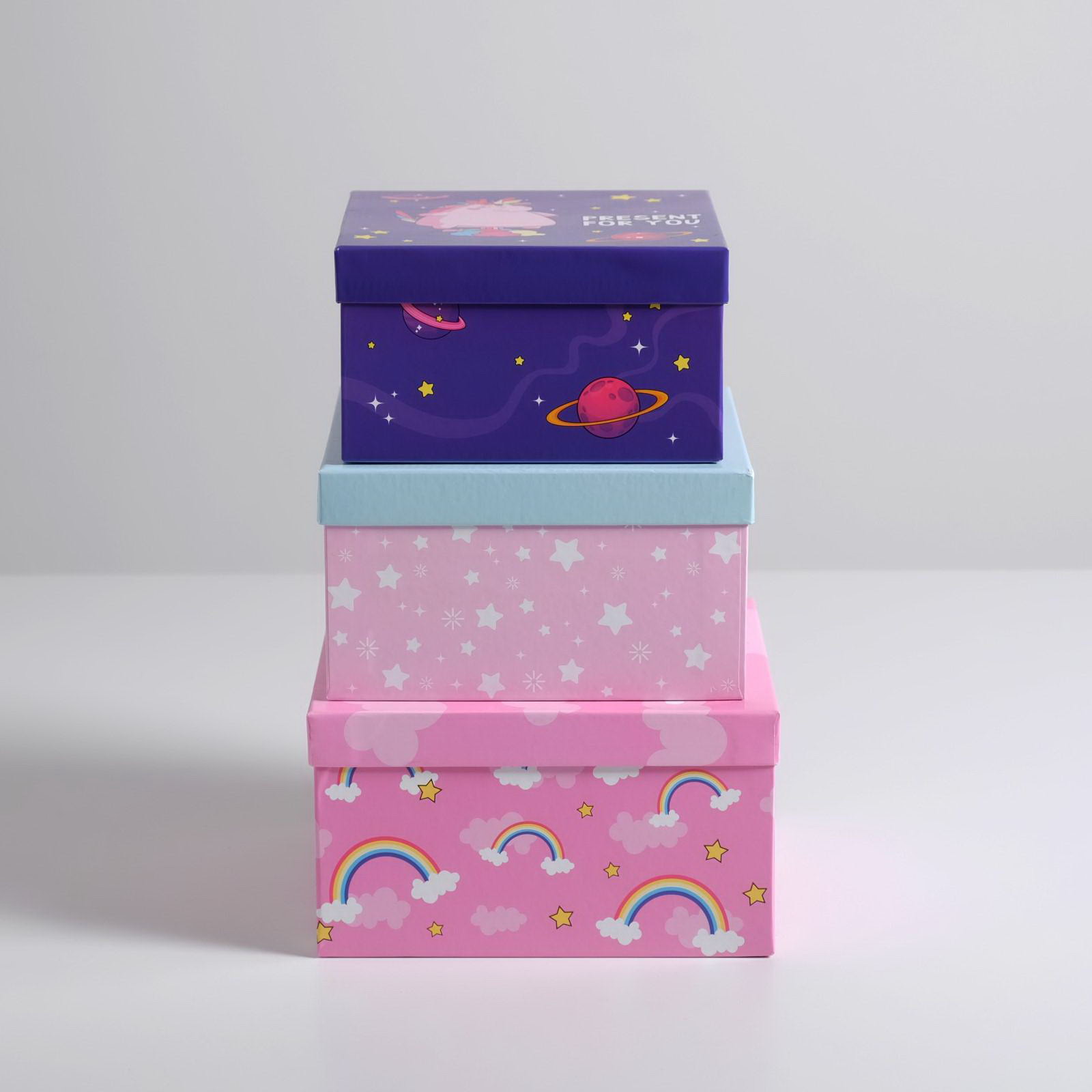 Набор подарочных коробок 3 в 1 "Персонажи", 18 x 18 x 10-22 x 22 x 12 см, Дарите Счастье, Россия