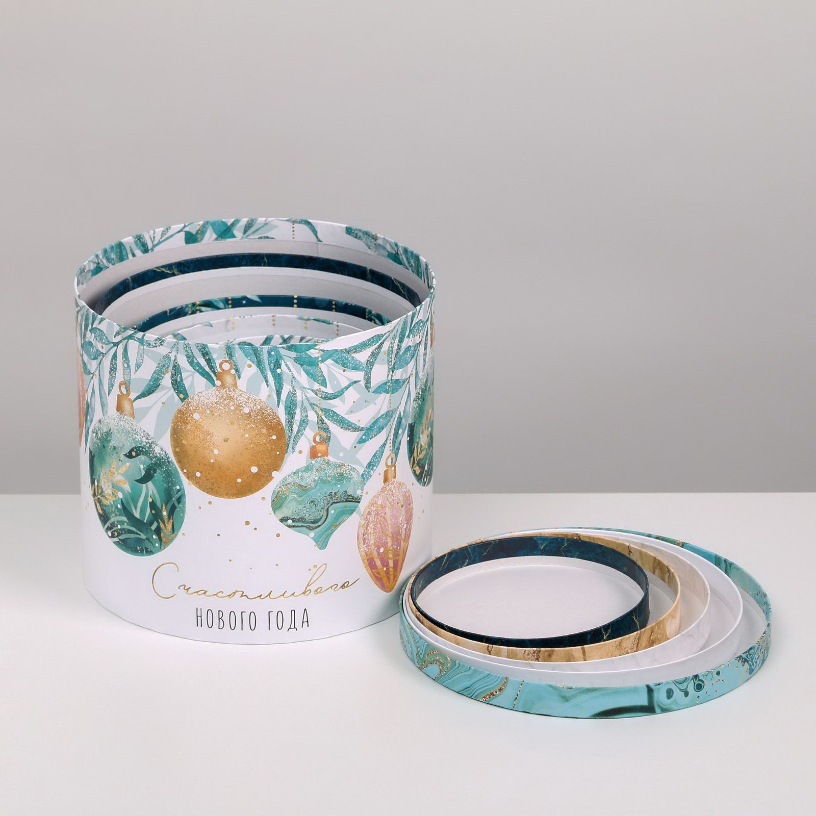 Цвет: Белый, Бирюзовый, Золотистый Размер упаковки: 22 x 19.5 x 22 см. Размер упаковки: 22 x 19.5 x 22 см. tnved: 4819100000 Запрет реализации по сегментам: 00000000534 Температурное ограничение: Нет Количество вложений в наборе: 5 в 1 Форма: Круглая Тематика праздника: Новый год Тематика: Новогодняя Символ года: Нет Плотность, г/?2: 1000 Набор: Да Высота большей коробки, см: 22 Ширина большей коробки, см: 19.5 Длина большей коробки, см: 19.5 Вид: Наборы коробок Декоративные элементы: Без декора Размер: Средний (18-24 см) см Размеры коробок: | ||