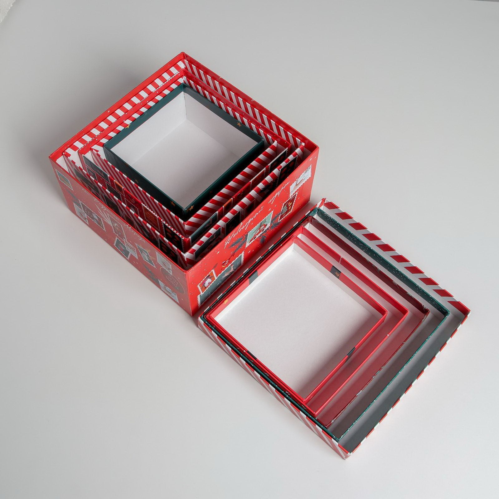 Набор подарочных коробок 5 в 1 "Новогодняя почта", 14 x 14 x 8 - 22 x 22 x 12 см, Новый год, Дарите Счастье, Россия