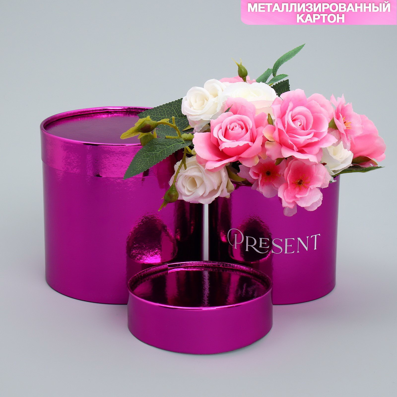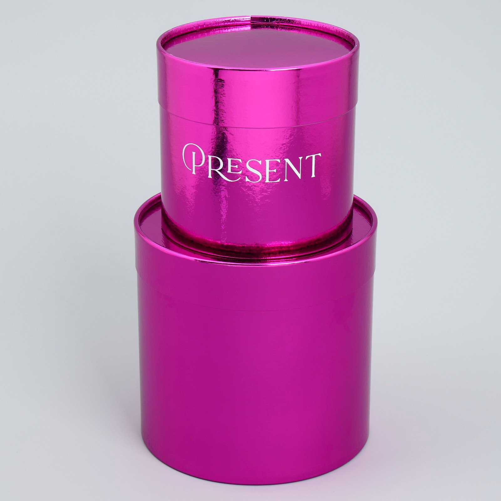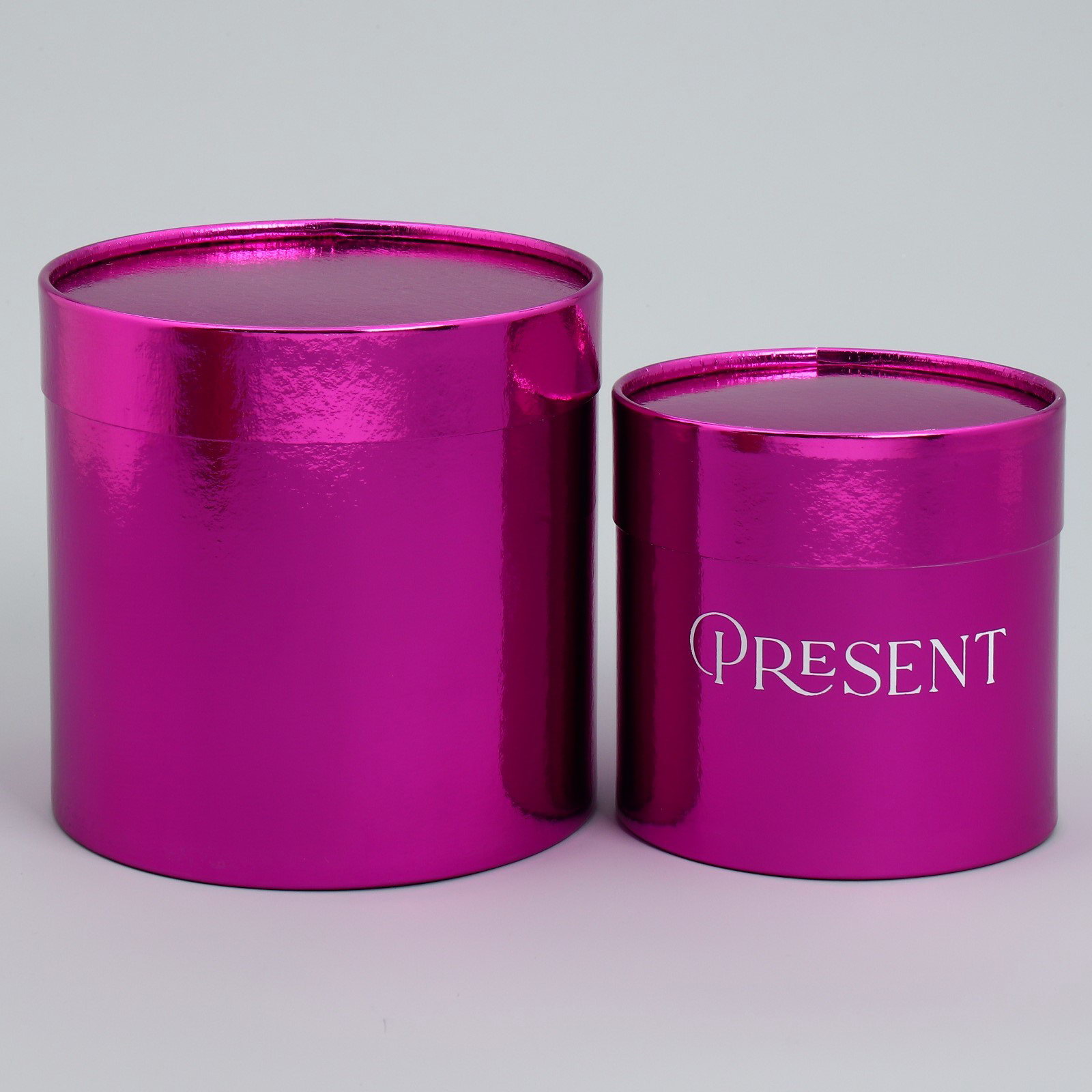 Набор коробок 2 в 1 круглые, упаковка подарочная, "Present", розовый металлик, 12 x 12, 15 x 15 см, Дарите Счастье, Россия