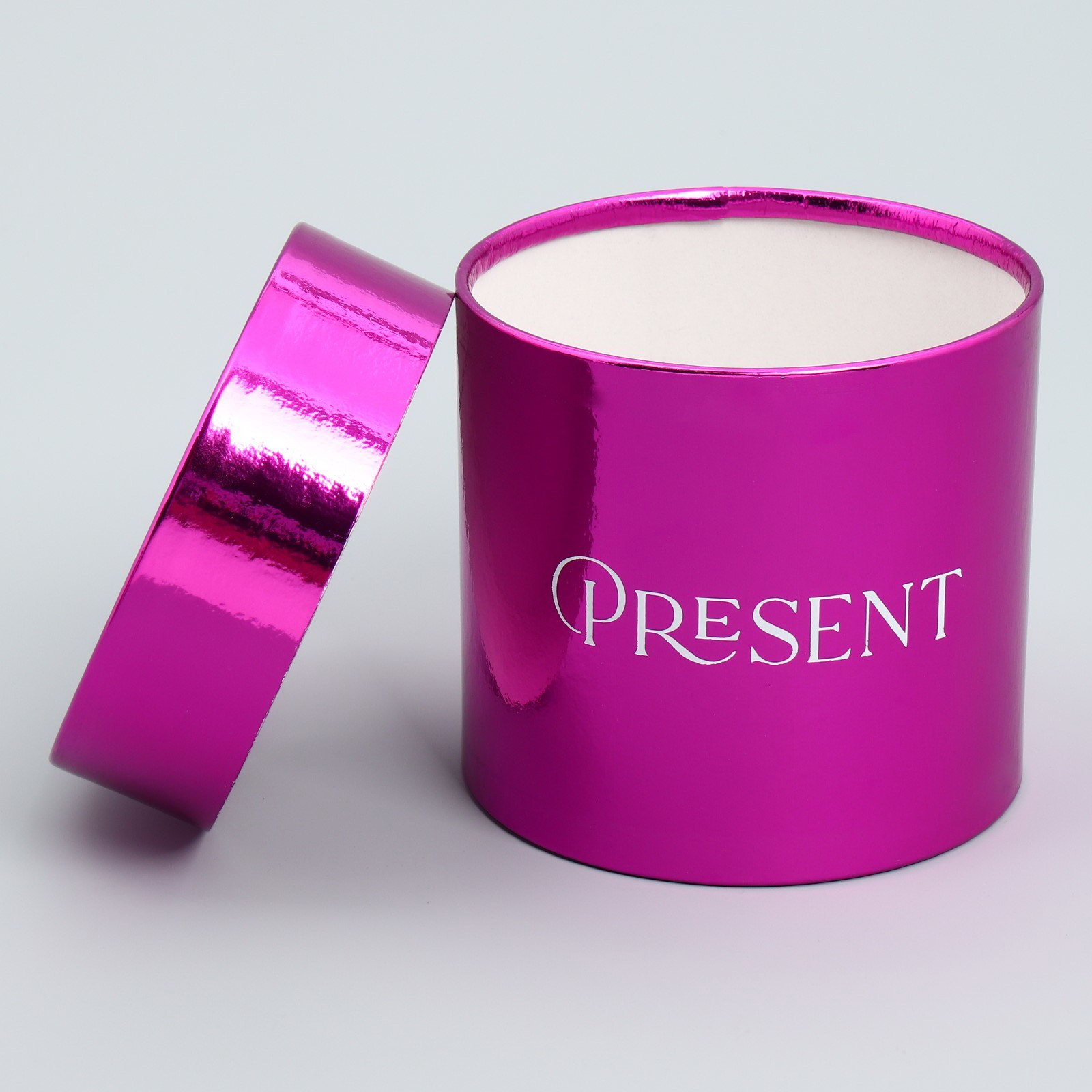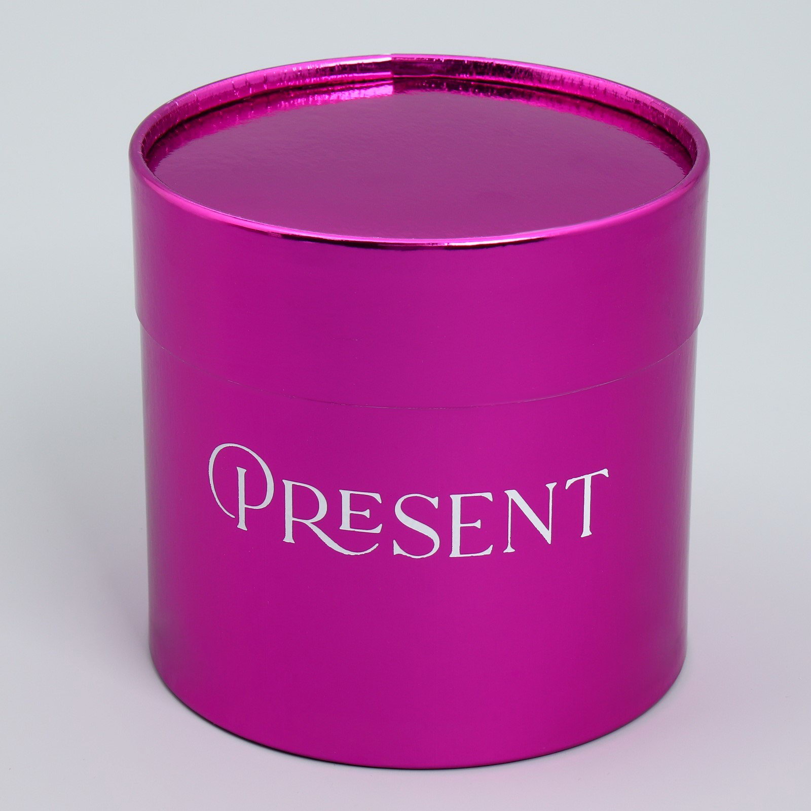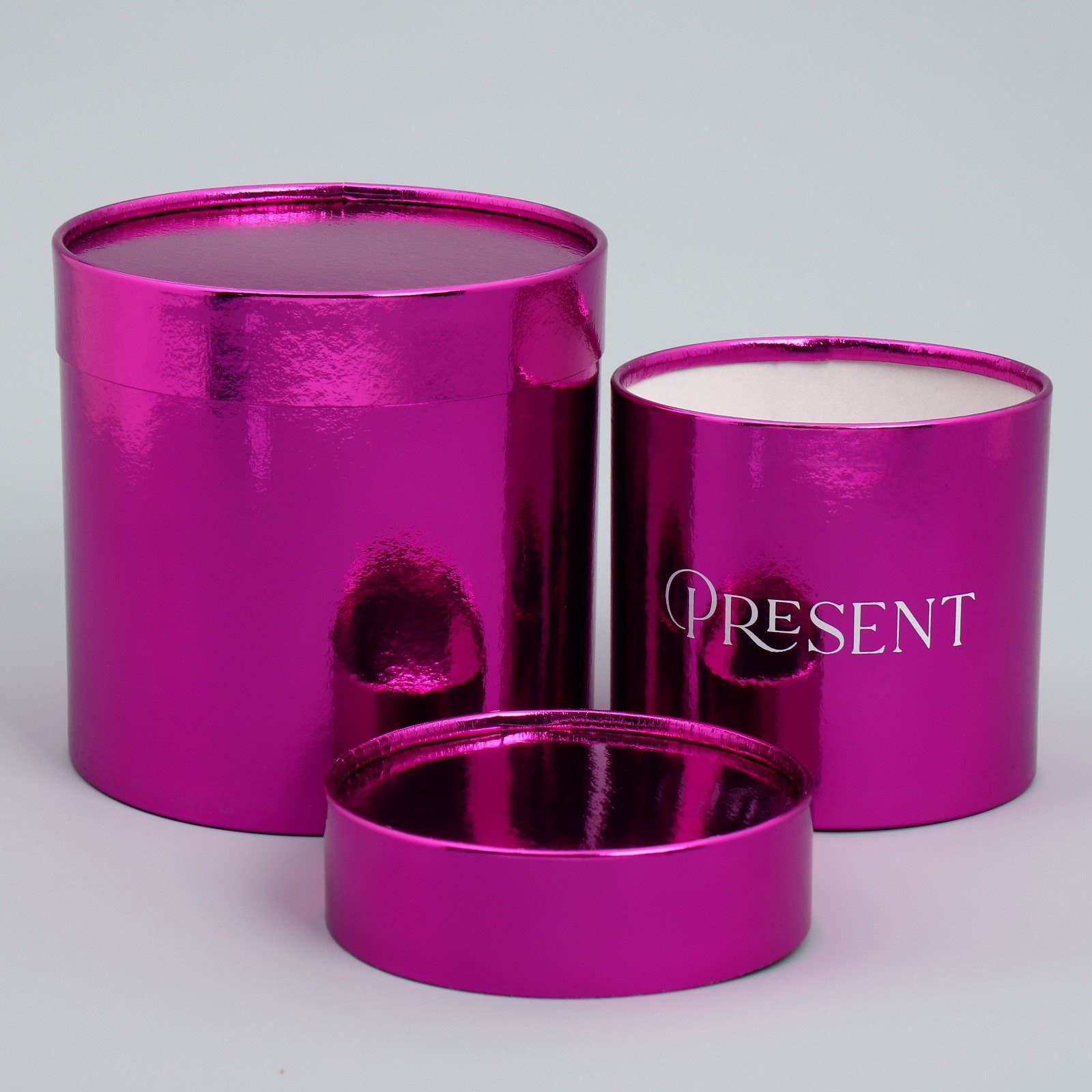 Набор коробок 2 в 1 круглые, упаковка подарочная, "Present", розовый металлик, 12 x 12, 15 x 15 см, Дарите Счастье, Россия