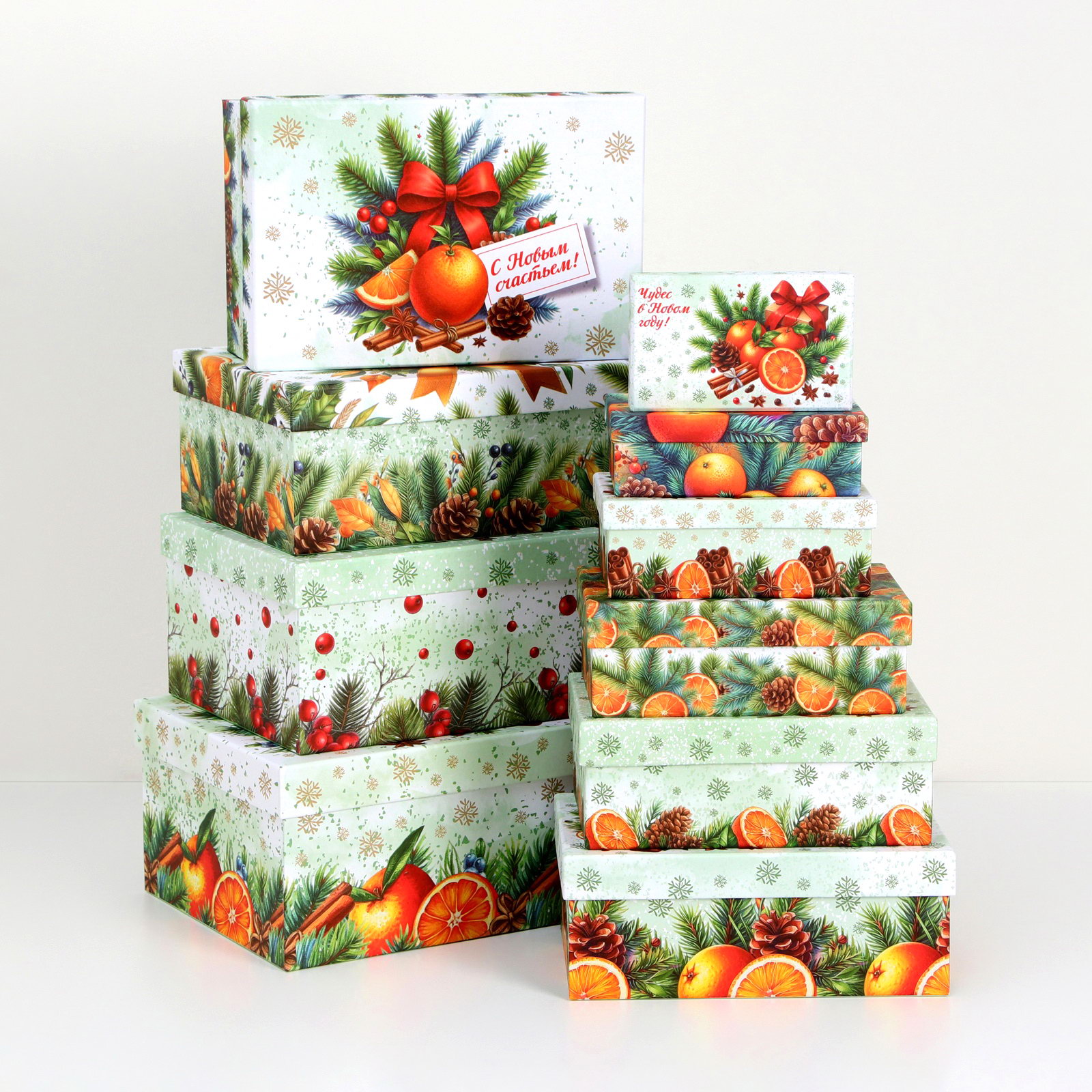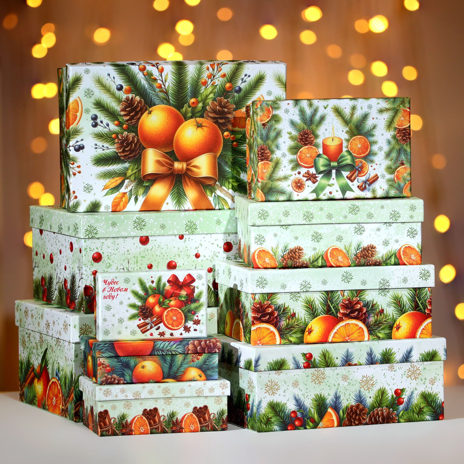 Набор подарочных новогодних коробок 10 в 1 "Мандариновое счастье", 32.5 x 20 x 12.5 - 12 x 7 x 4 см, UPAK LAND, Россия