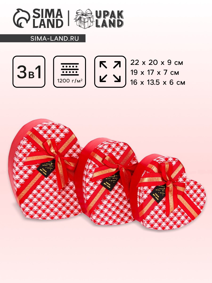Набор коробок 3 в 1 Сердца 22*20*9/19*17*7.5/16*13.5*6 см, 20x22x9 см., UPAK LAND, Китай