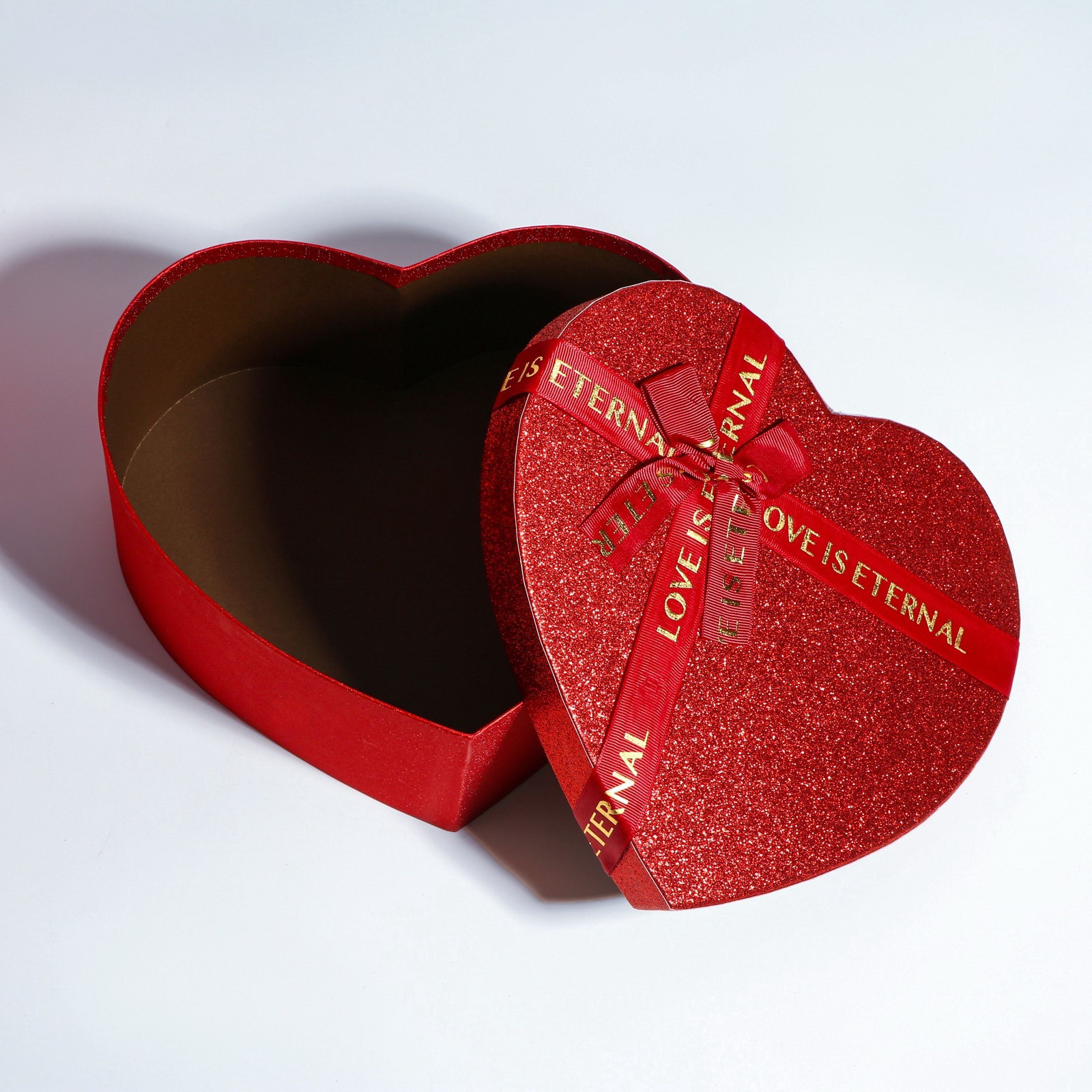 Набор подарочных коробок сердце 3 в 1, сияющий красный с бантом "Любовь вечна", 31x27x13.3; 28x25x11.7; 26x23x10.3 см, 27x31x13.3 см., UPAK LAND, Китай