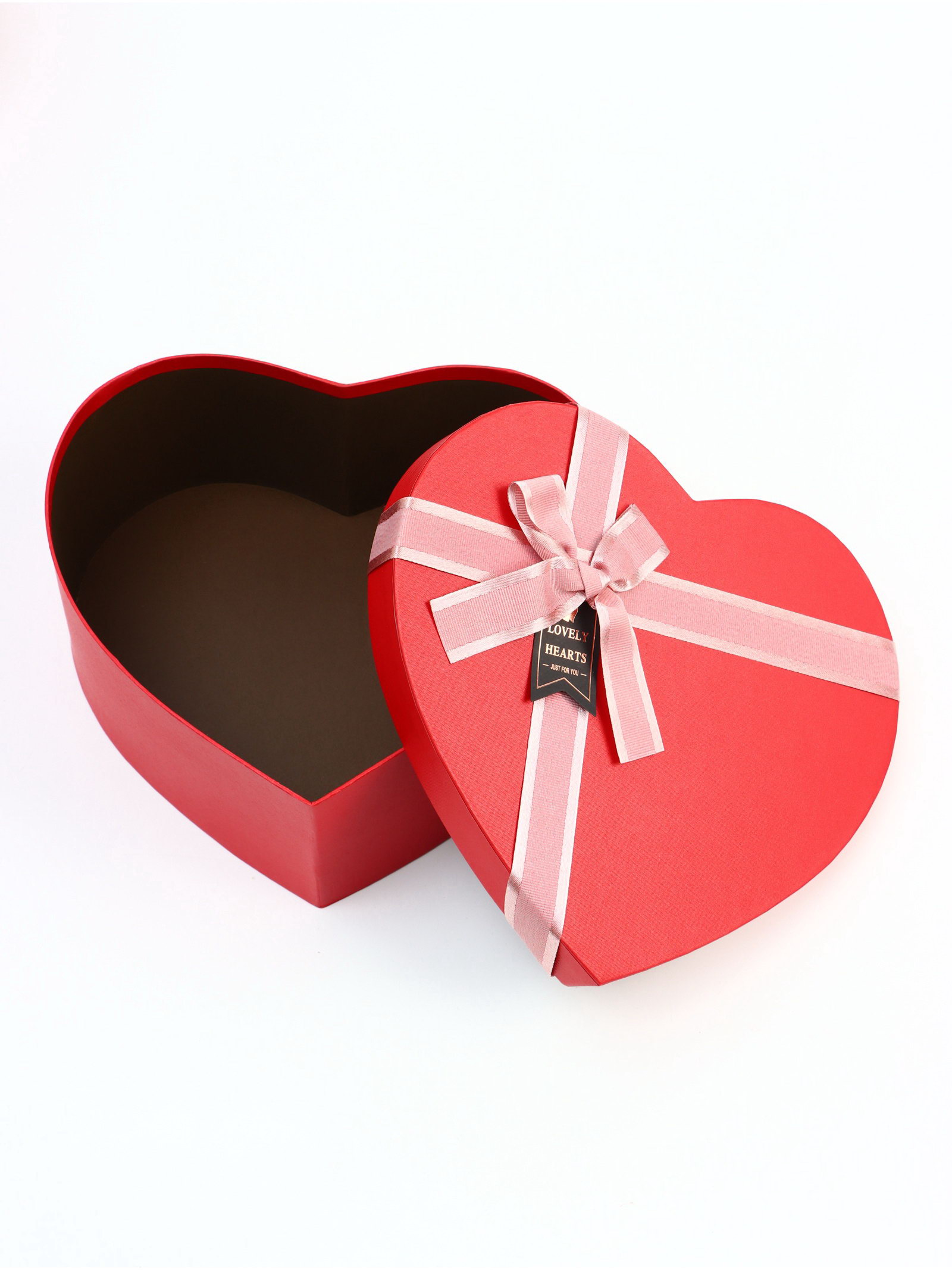 Набор подарочных коробок сердце 3 в 1, красный с розовым бантом, 31x27x13.3; 28x25x11.7; 26x23x10.3 см, 27x31x13.3 см., UPAK LAND, Китай