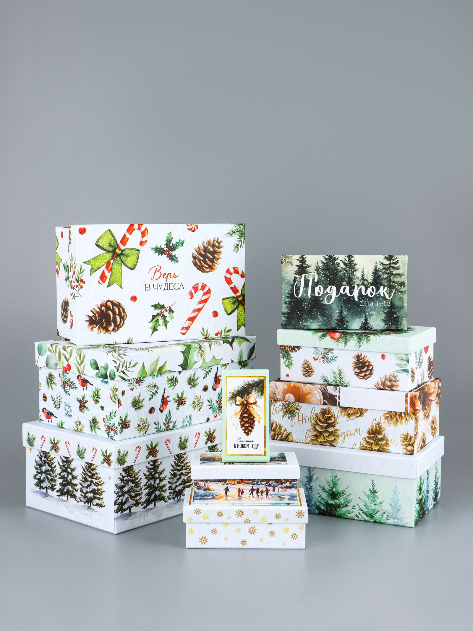 Набор подарочных новогодних коробок 10 в 1 "Новогодние мечты", 30x19x11.5 - 12x6.5x4 см, UPAK LAND, Россия