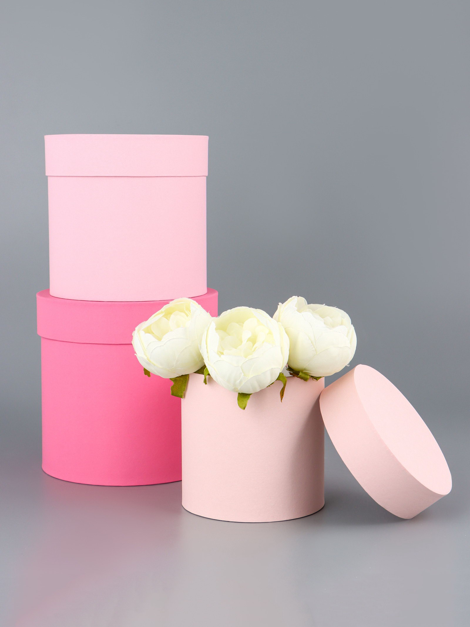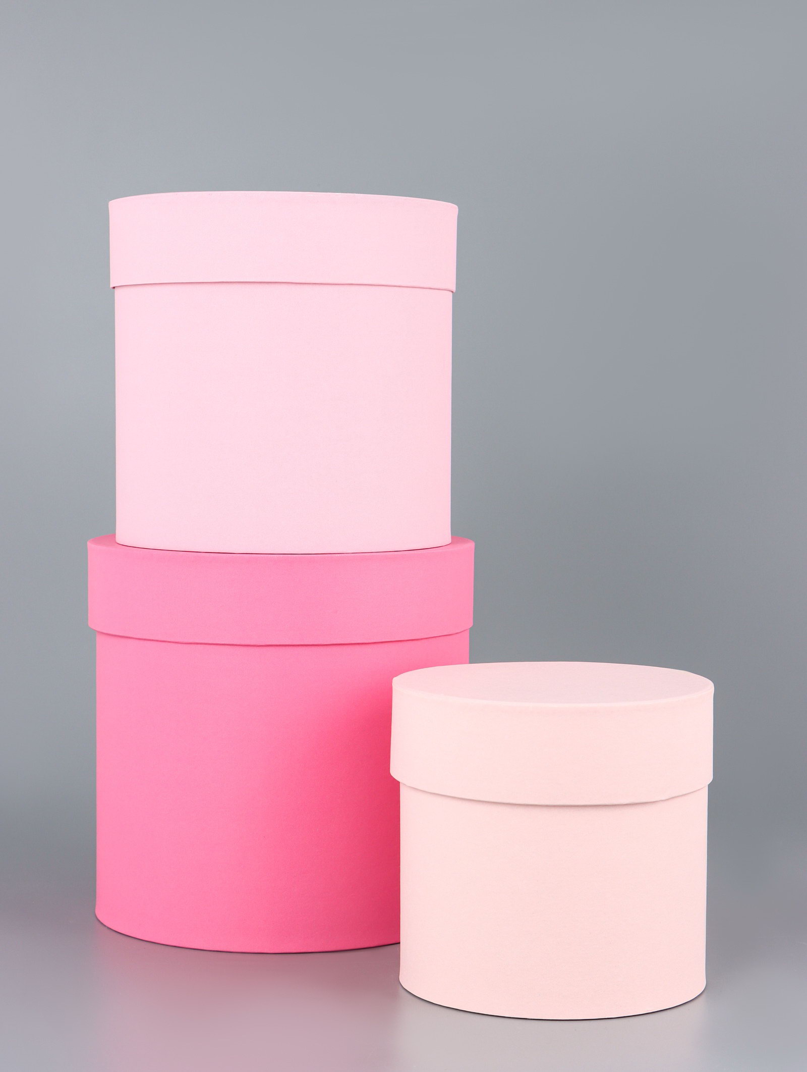 Набор круглых подарочных коробок "Пудра" 3 в 1 - 18x16x13 см, 18 см., UPAK LAND, Россия