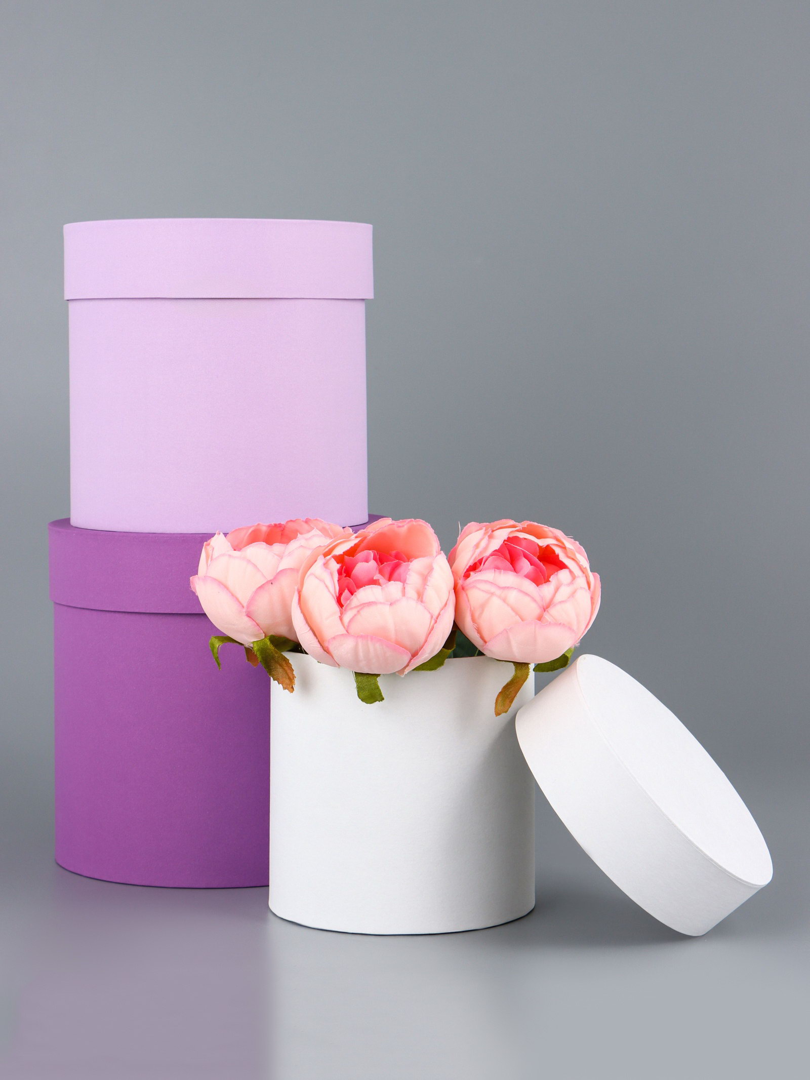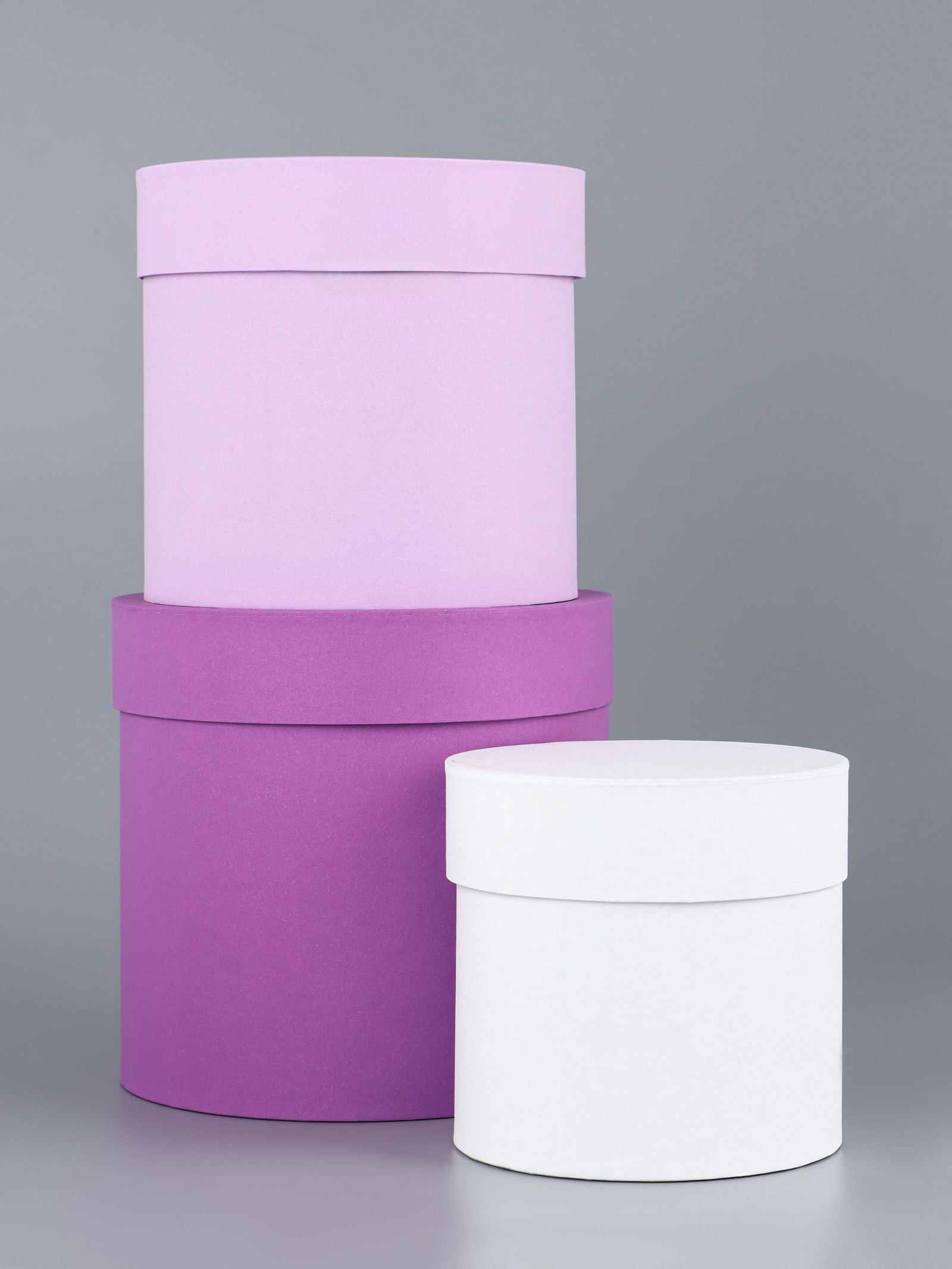 Набор круглых подарочных коробок "Сирень" 3 в 1 - 18x16x13 см, 18 см., UPAK LAND, Россия