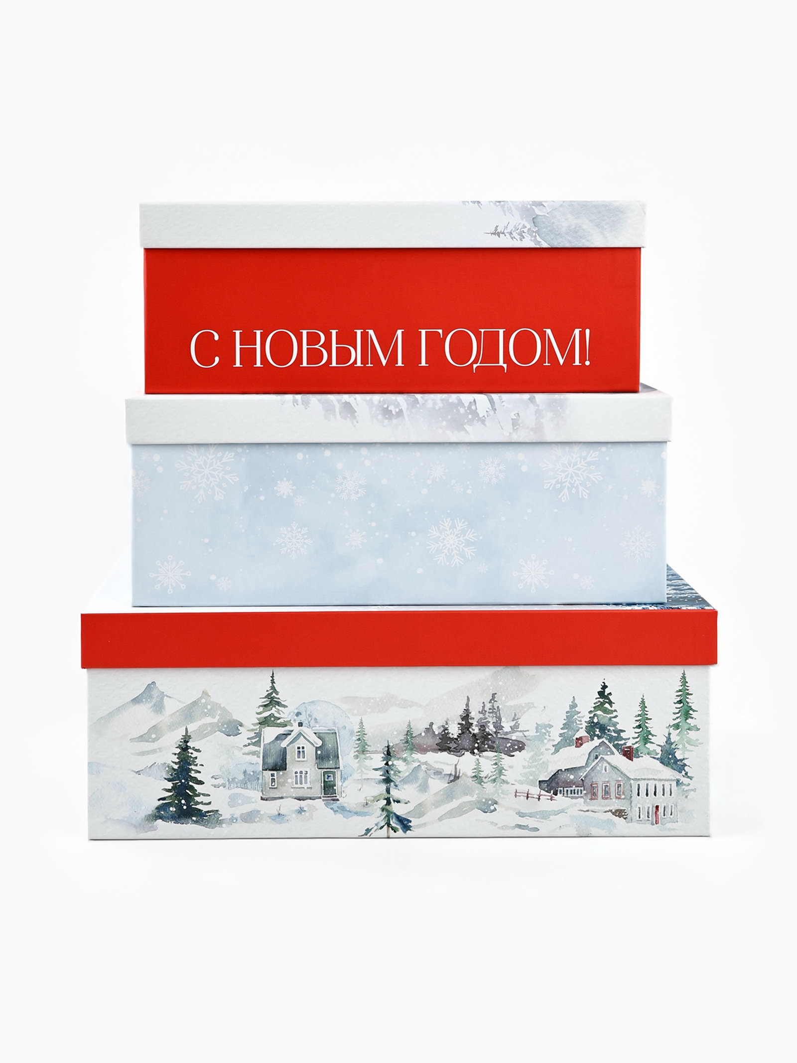 Набор подарочных коробок 3 в 1 "Уютный Новый год", 26x17x10-32.5x20x12.5 см, Дарите Счастье, Россия