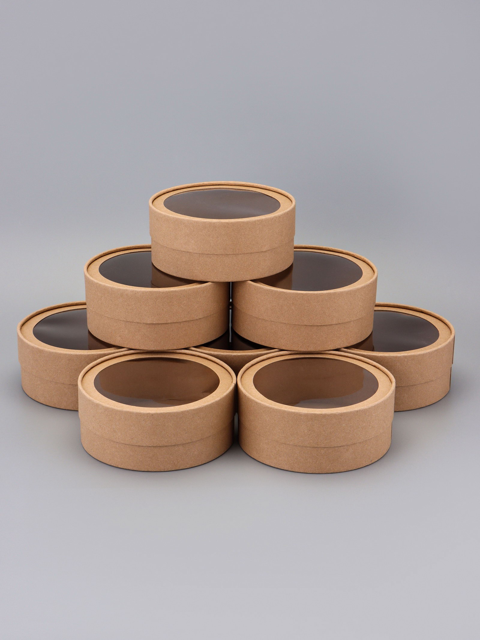 Набор круглых подарочных коробок, завальцованные с окном, крафт, набор 8 шт., 15x6 см, UPAK LAND, Россия
