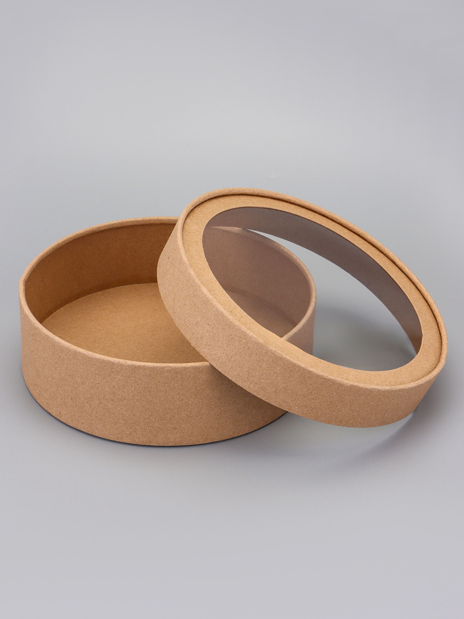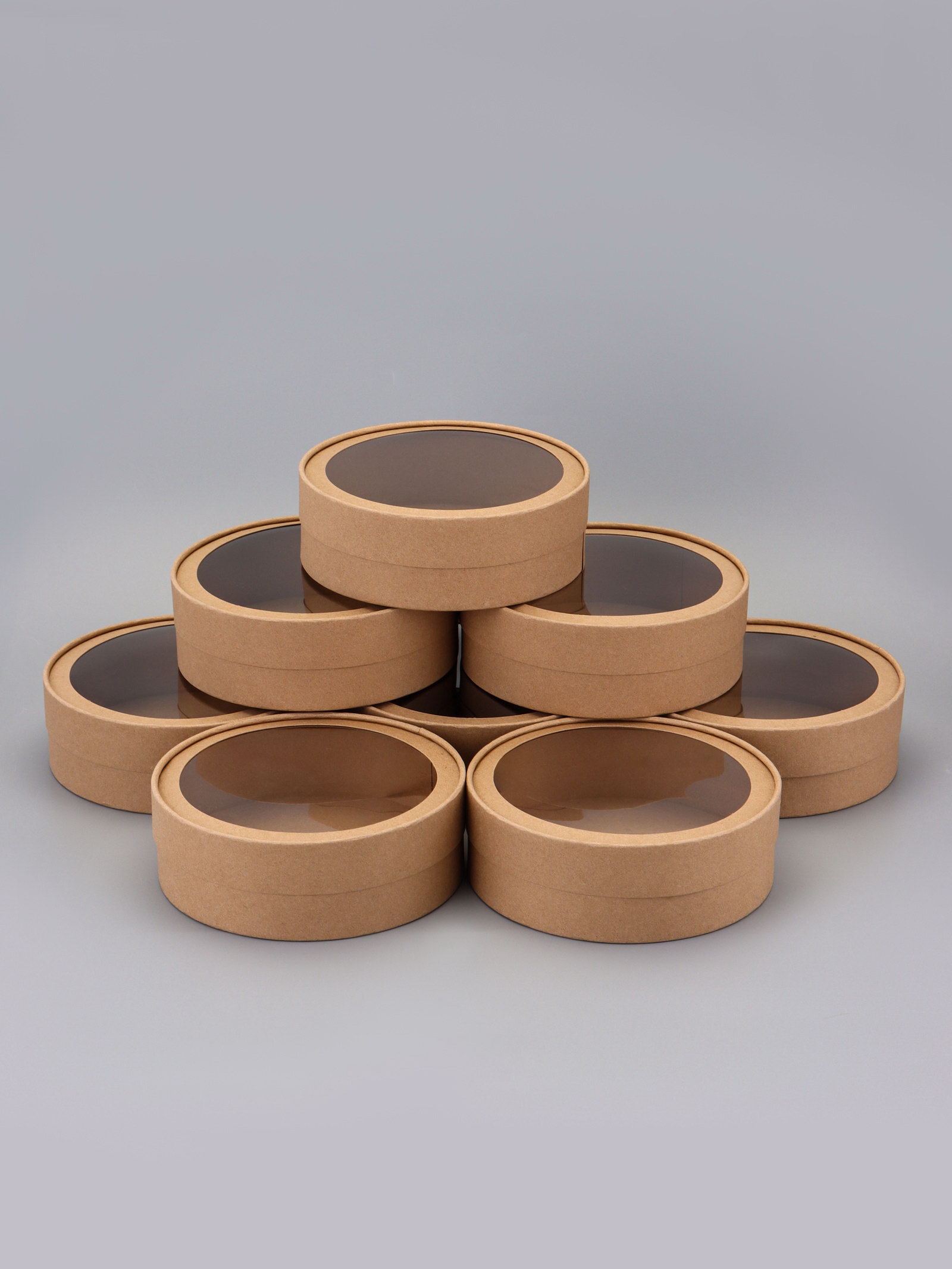 Набор круглых подарочных коробок, завальцованные с окном, крафт, набор 8 шт., 18x6 см, UPAK LAND, Россия