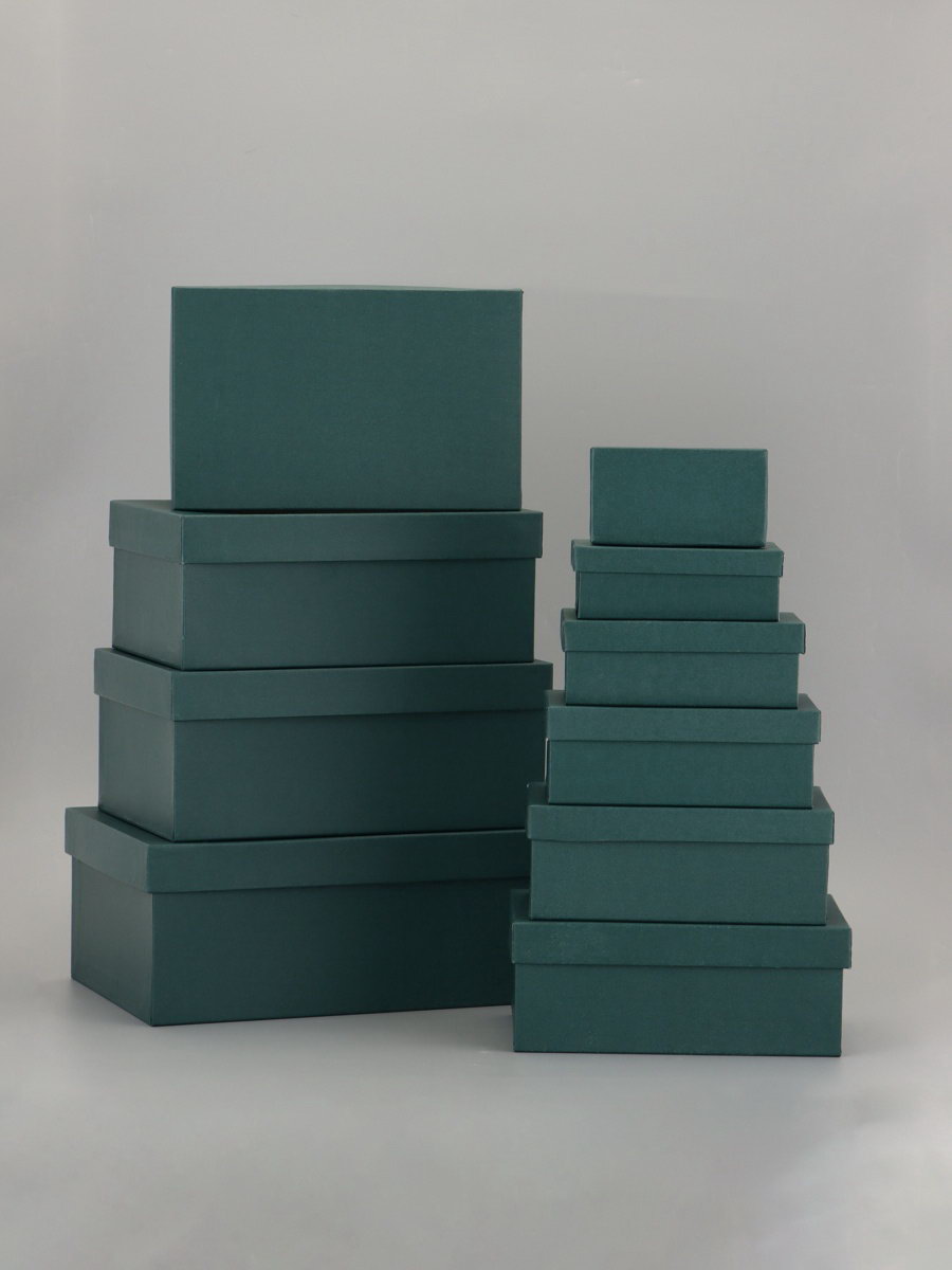 Набор подарочных коробок 10 в 1 "Темно-зеленый" 30x19x12 - 12x6.5x4 см, UPAK LAND, Россия