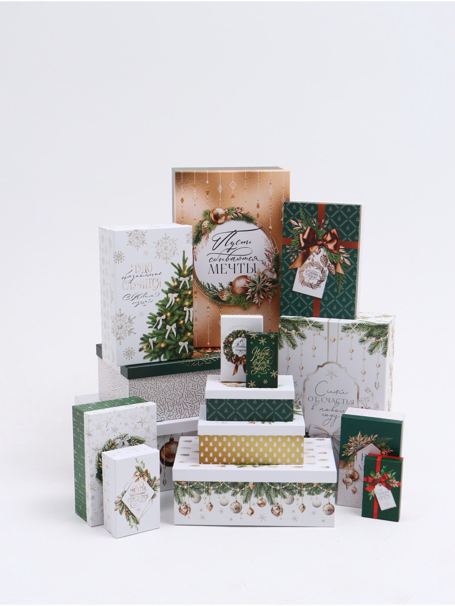 Набор коробок подарочных 15 в 1 "Роскошный Новый год",12x7x4 см - 46.6x35.2x17.5 см, Дарите Счастье, Россия