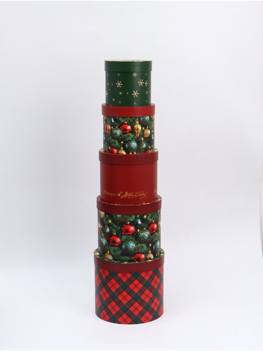 Цвет: Бордовый, Зелёный Форма: Круглая, Цилиндрическая Размер упаковки: 22.5 x 19.5 x 22.5 см. tnved: 4819100000 Тематика: Новогодняя Тематика праздника: Новый год Символ года: Символ года 2026 (Лошадь) Длина большей коробки, см: 22 Ширина большей коробки, см: 22 Высота большей коробки, см: 19.5 Количество вложений в наборе: 5 в 1 Плотность, г/?2: 1000 Размер: Средний (18-24 см) см Дизайн: С рисунком, надписью | ||