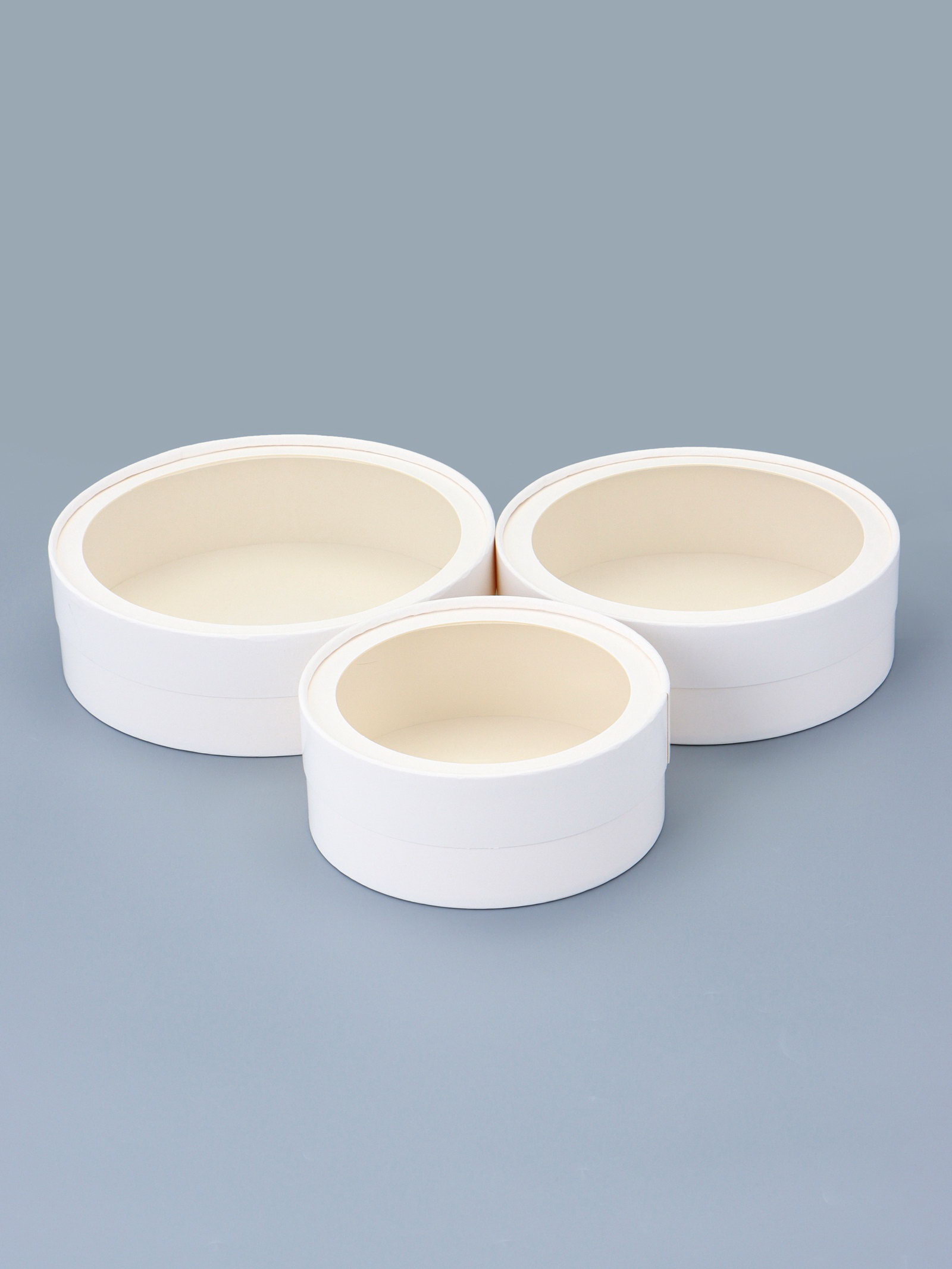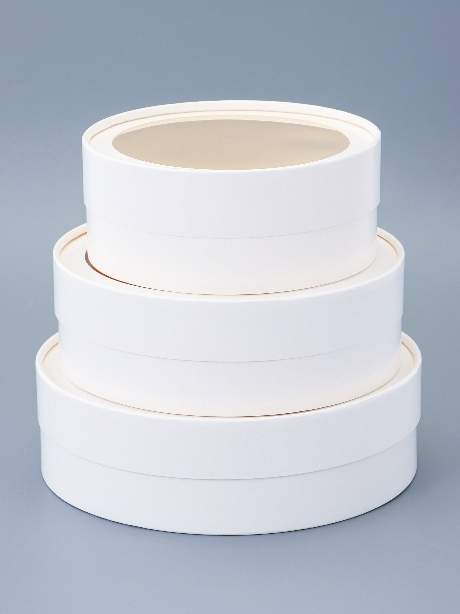 Набор подарочных коробок 3 в 1 круглые с окном, завальцованные, белые, 20x18x15 см, UPAK LAND, Россия