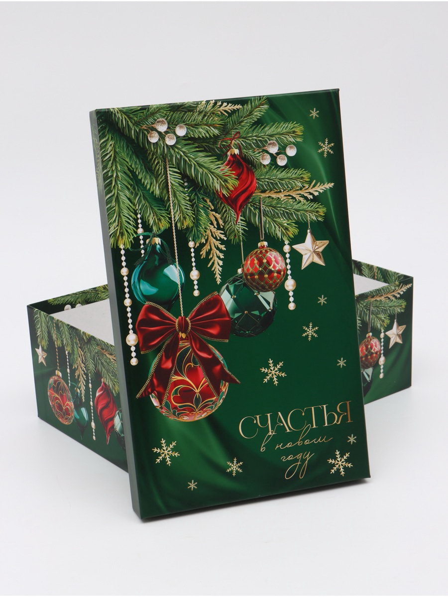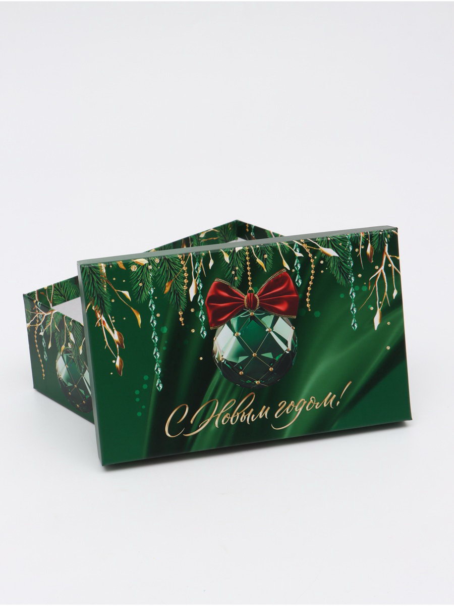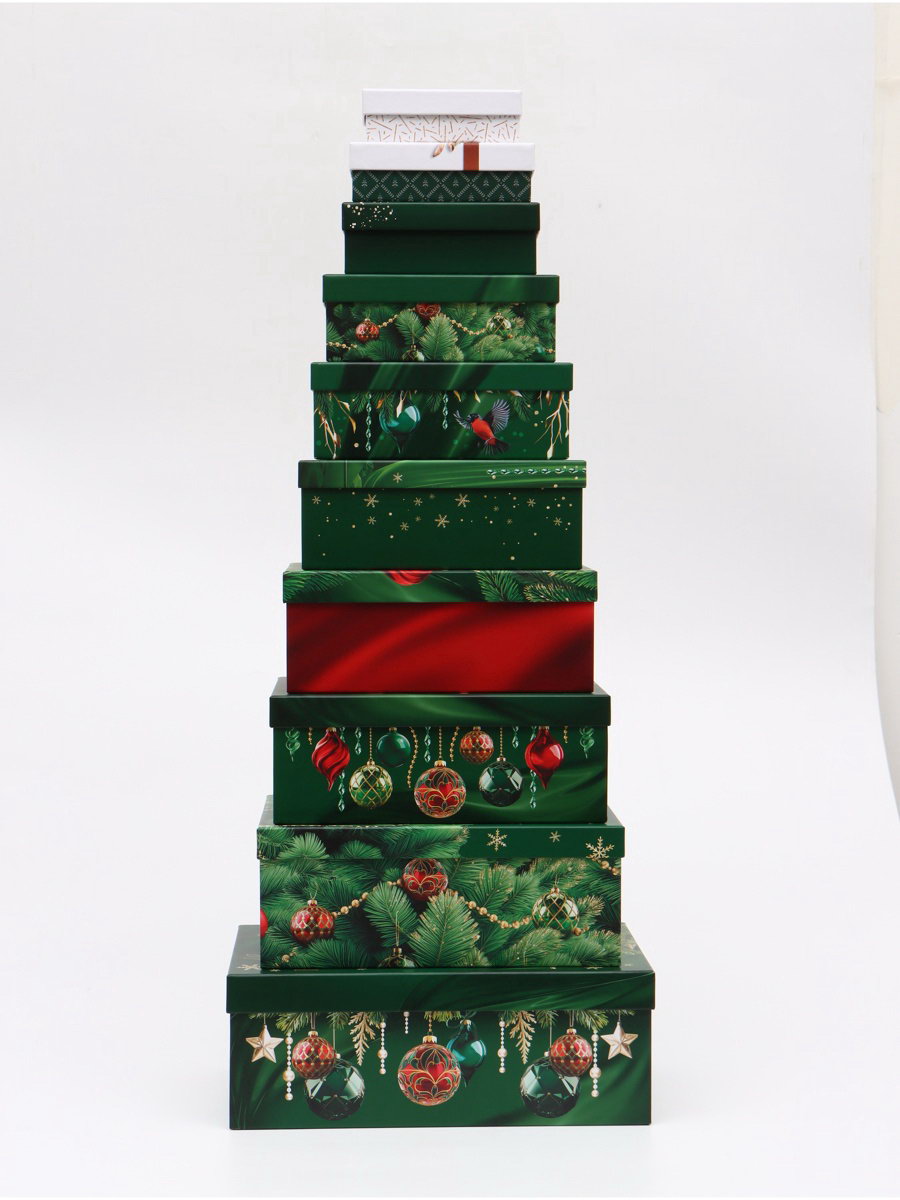 Набор новогодних подарочных коробок 10 в 1 "Изумрудные шары", 12x7x4 – 32.5x20x12.5 см, Дарите Счастье, Россия