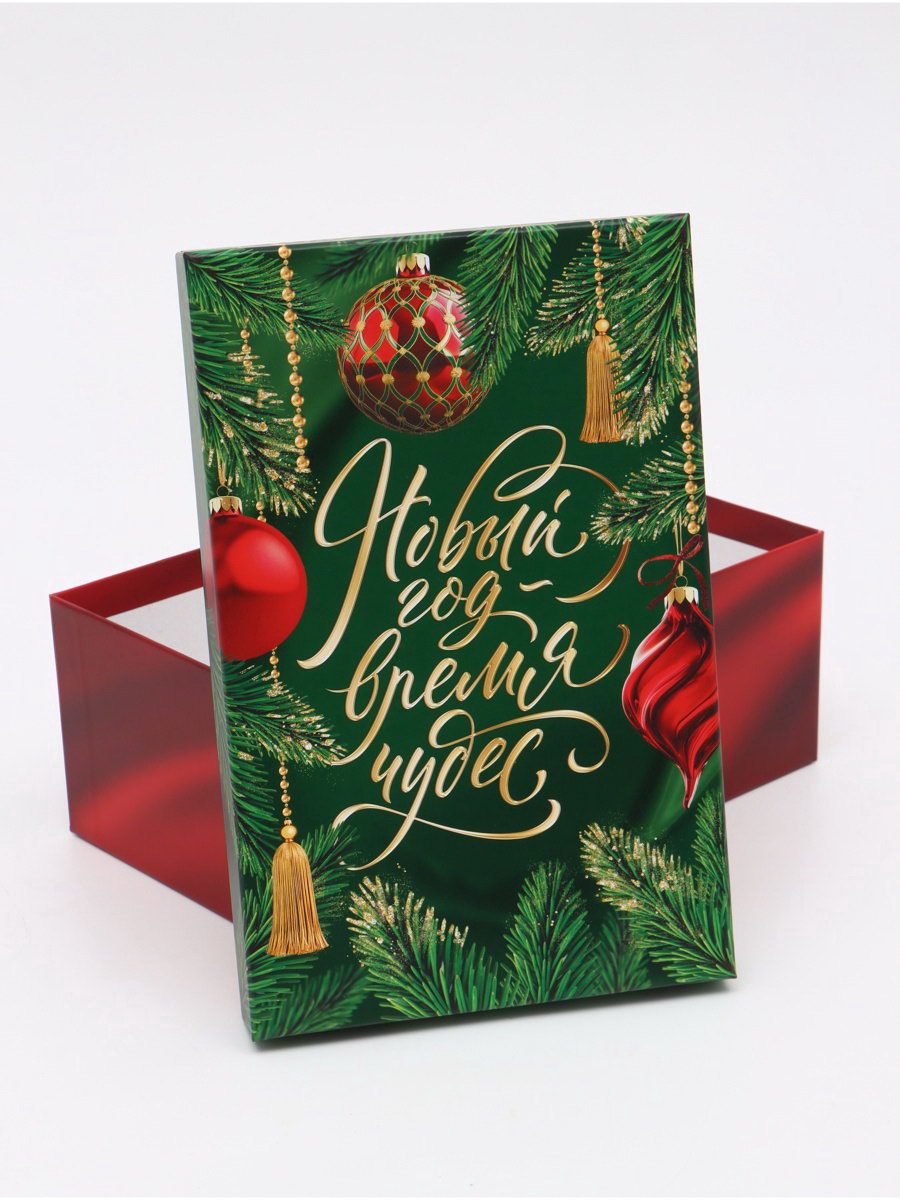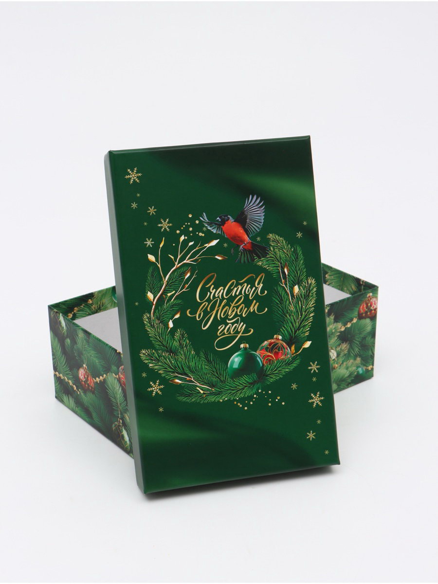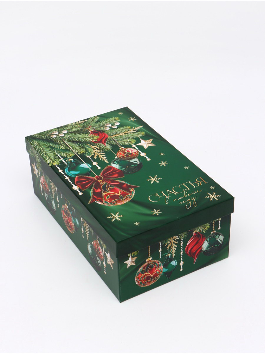 Набор новогодних подарочных коробок 10 в 1 "Изумрудные шары", 12x7x4 – 32.5x20x12.5 см, Дарите Счастье, Россия