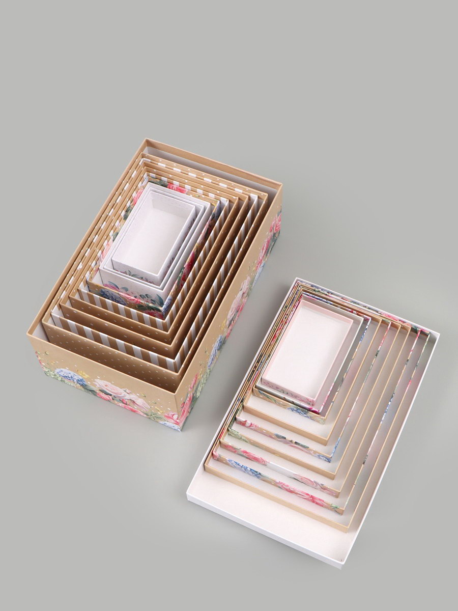 Набор подарочных коробок 10 в 1 "Нежные цветы", 12 x 7 x 4 - 32.5 x 20 x 12.5 см, Дарите Счастье, Россия