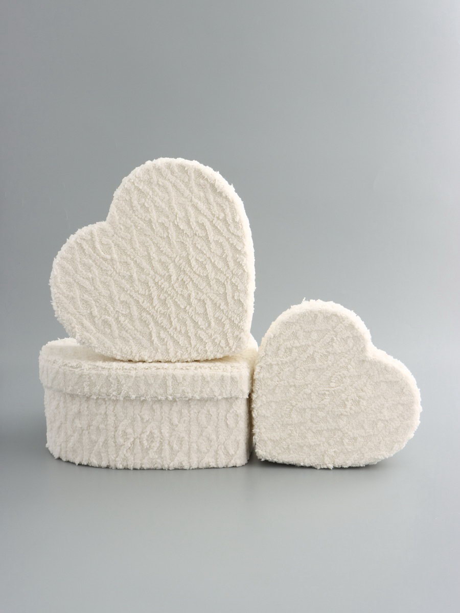 Набор подарочных коробок 3 в 1 сердца, молочный, плюшевая поверхность, L?30x27.5x12 см M?25.5x23.5x10 см S:20.7x19.5x8 см, 27.5x30x12 см., UPAK LAND, Китай