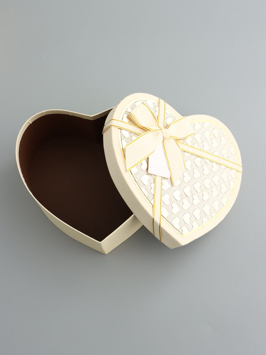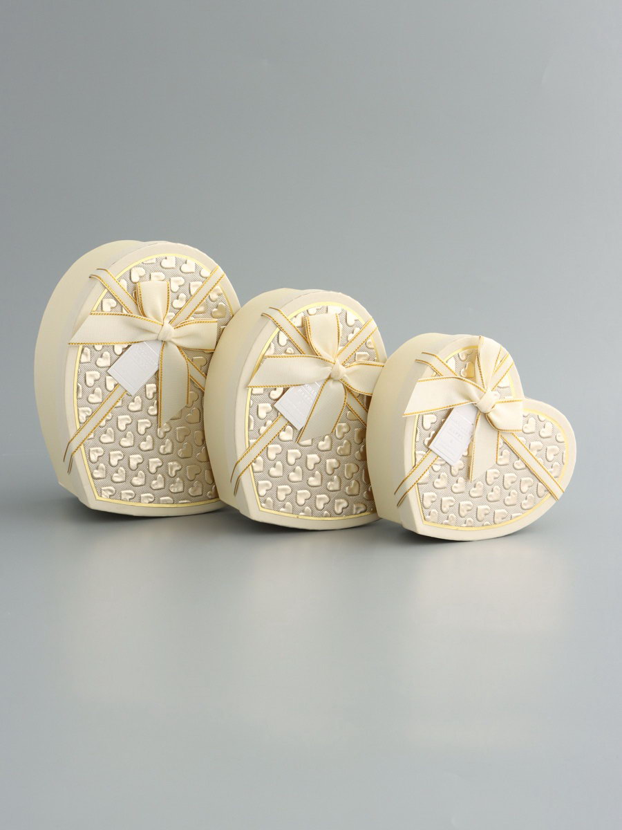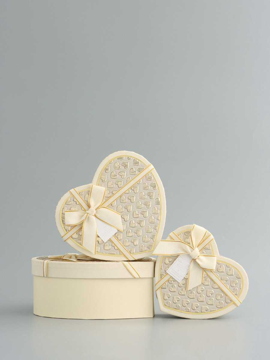 Набор подарочных коробок 3 в 1 сердца, кремовый, 22x20x9; 18.5x17x7.5; 16x14x6 см, 20x22x9 см., UPAK LAND, Китай