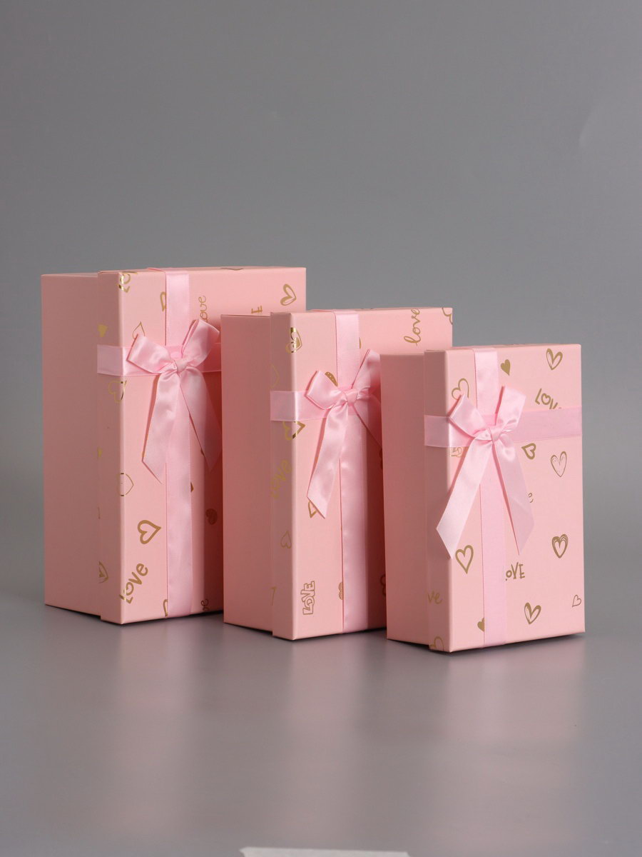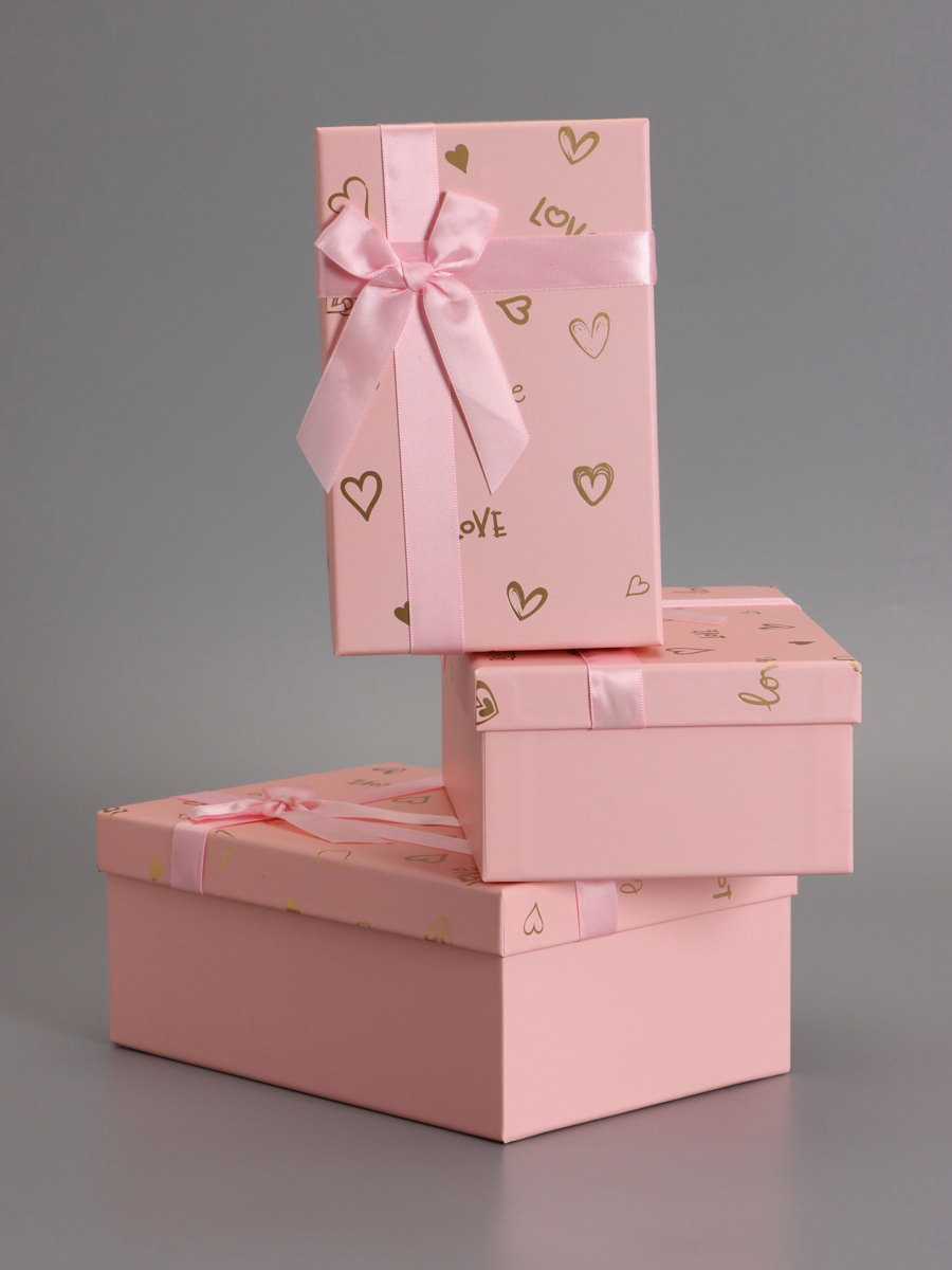 Набор подарочных коробок 3 в 1, прямоугольные, розовый с золотыми сердечками, 23x16x9.5; 21x14x8; 19x12x6.5 см, 16x23x9.5 см., UPAK LAND, Китай