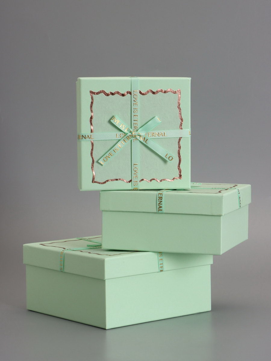 Создаёт ощущение стиля и продуманности: Мятный цвет ассоциируется с свежестью, спокойствием и вниманием к деталям. Такой набор коробок говорит о хорошем вкусе дарителя и превращает даже несколько небольших презентов в стильный и запоминающийся жест. | ||