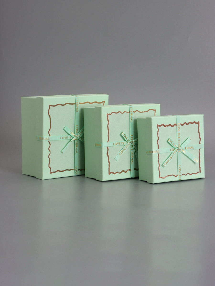 Набор подарочных коробок 3 в 1, квадратные, мятный, 19x19x9.8; 17x17x8; 15x15x6.5 см, 19x19x9.8 см., UPAK LAND, Китай